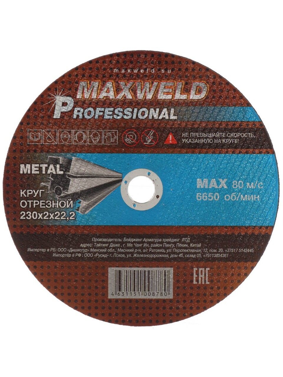Вы можете приобрести «Круг отрезной по металлу, Maxweld, Professional, диаметр 230х2 мм, посадочный диаметр 22.2 мм» и другие товары в нашем интернет-магазине в Тамбове по низким ценам и с бесплатным самовывозом.