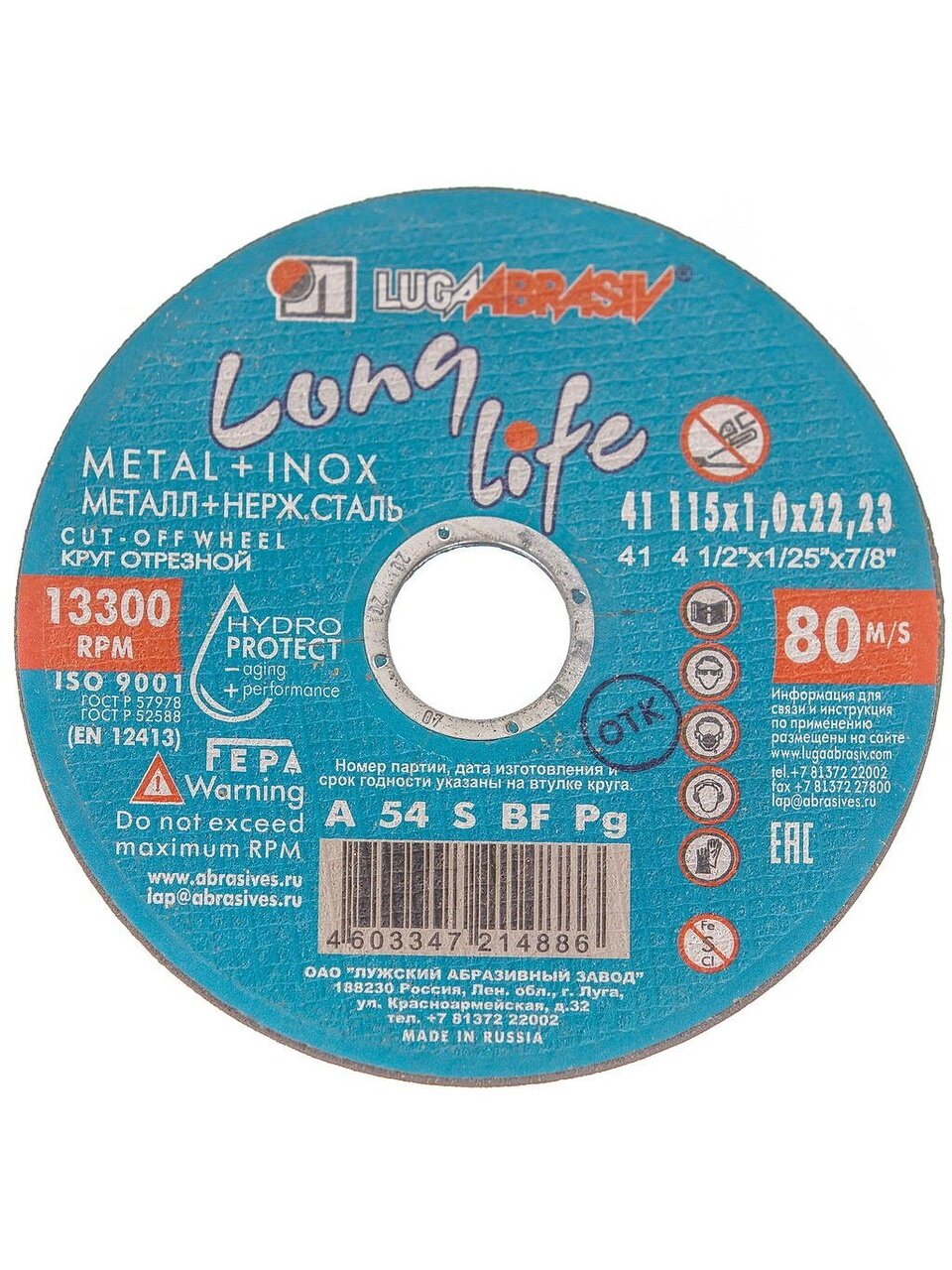 Вы можете приобрести «Круг отрезной по металлу, LugaAbrasiv, Long life, BF, диаметр 115х1 мм, посадочный диаметр 22.23 мм, зернистость A54, S 80 м/с» и другие товары в нашем интернет-магазине в Клинцах по низким ценам и с бесплатным самовывозом.