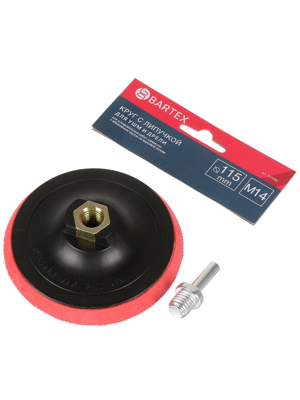 Круг шлифовальный для дрели и УШМ, Bartex, диаметр 115 мм, посадочный диаметр 8 мм, на липучке