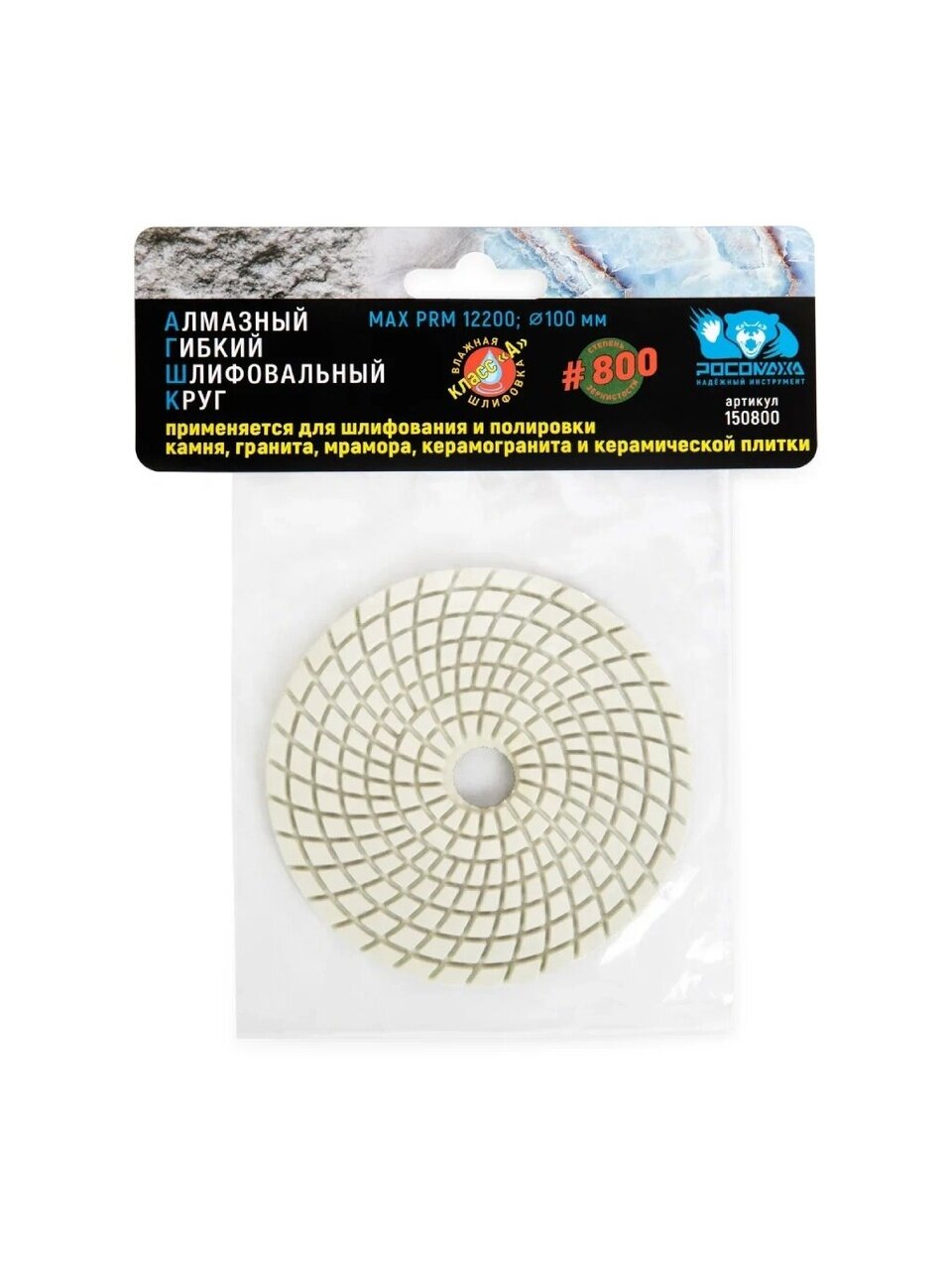 Круг алмазный гибкий Росомаха, диаметр 100 мм, зернистость P800, шлифовальный, 150800