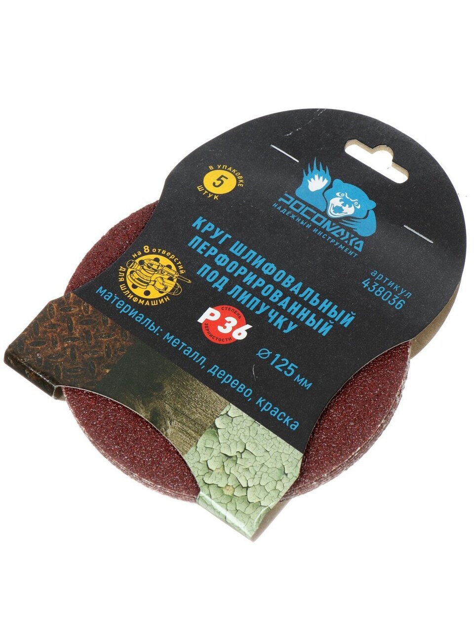 Вы можете приобрести «Круг шлифовальный Росомаха, диаметр 125 мм, зернистость P36, под липучку, перфорированный, 8 отверстий, 5 шт, 438036» и другие товары в нашем интернет-магазине в Астрахани по низким ценам и с бесплатным самовывозом.