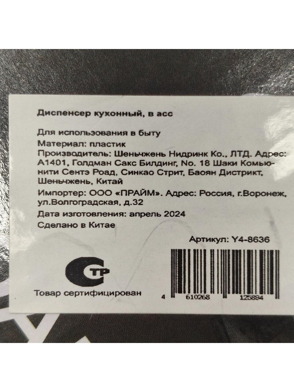 Вы можете приобрести «Диспенсер кухонный, пластик, серый, Y4-8636» и другие товары в нашем интернет-магазине в Астрахани по низким ценам и с бесплатным самовывозом.