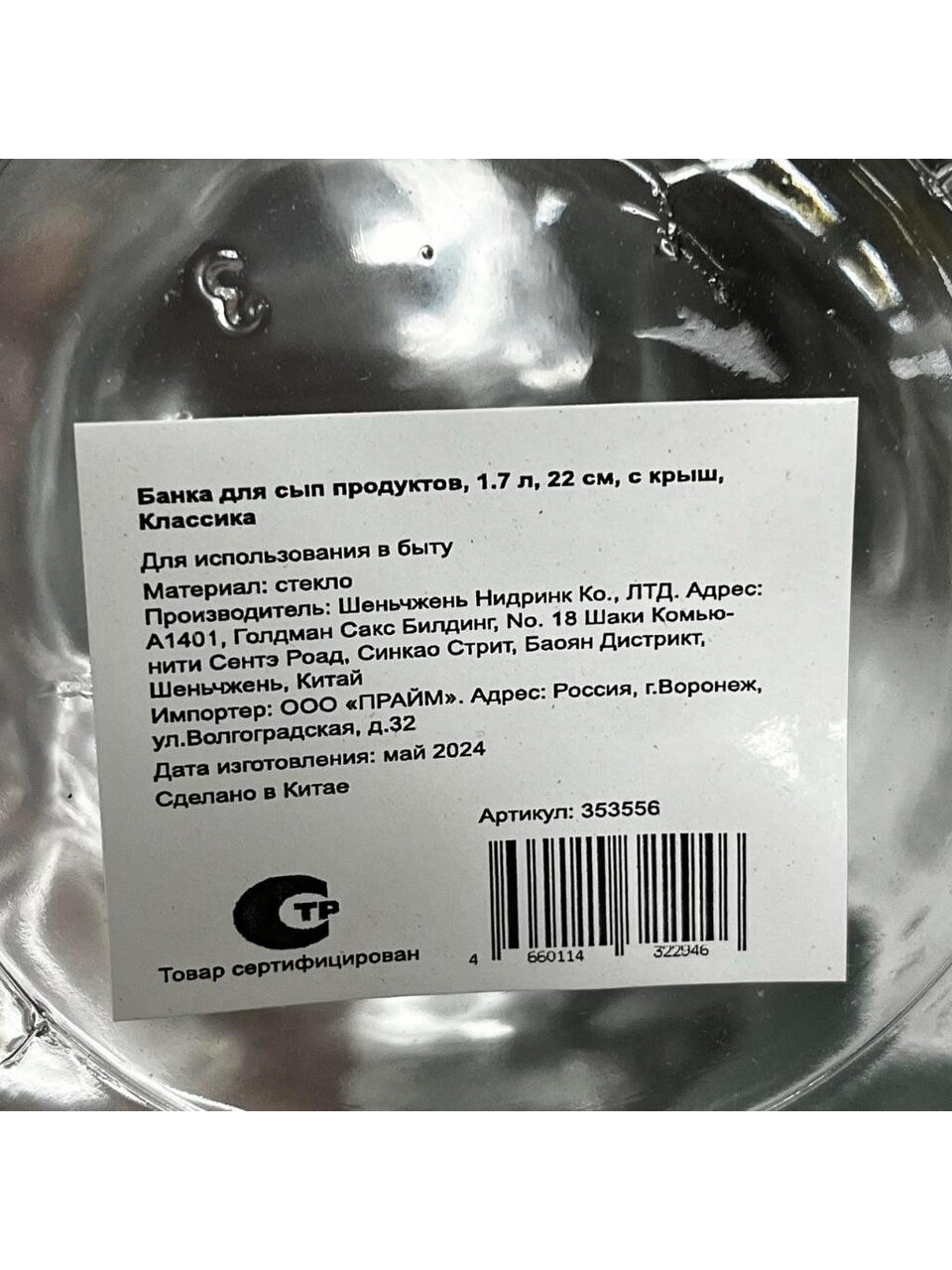 Вы можете приобрести «Банка для сыпучих продуктов, стекло, 1.7 л, 22 см, с крышкой, Классика, Y4-3576» и другие товары в нашем интернет-магазине в Белгороде по низким ценам и с бесплатным самовывозом.