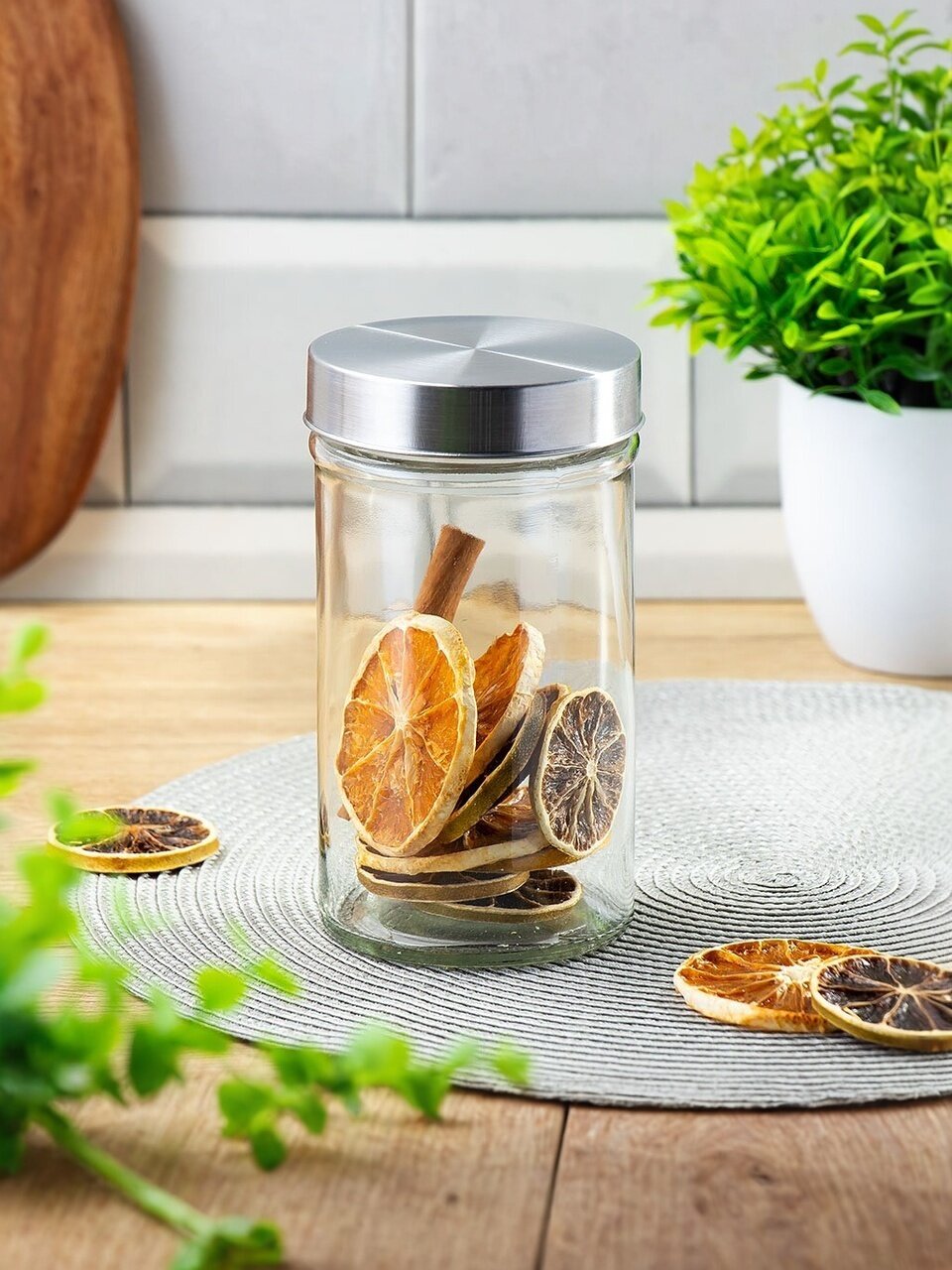 Банка для хранения изготовлена из прочного стекла. Изделие снабжено крышкой, которая плотно закрывается. Она имеет прозрачные стенки, поэтому всегда видно, что именно находится внутри. Банка удобна для хранения круп, сахара, специй, кофе или чая. Она стильно дополнит интерьер и поможет эффективно организовать пространство на кухне.