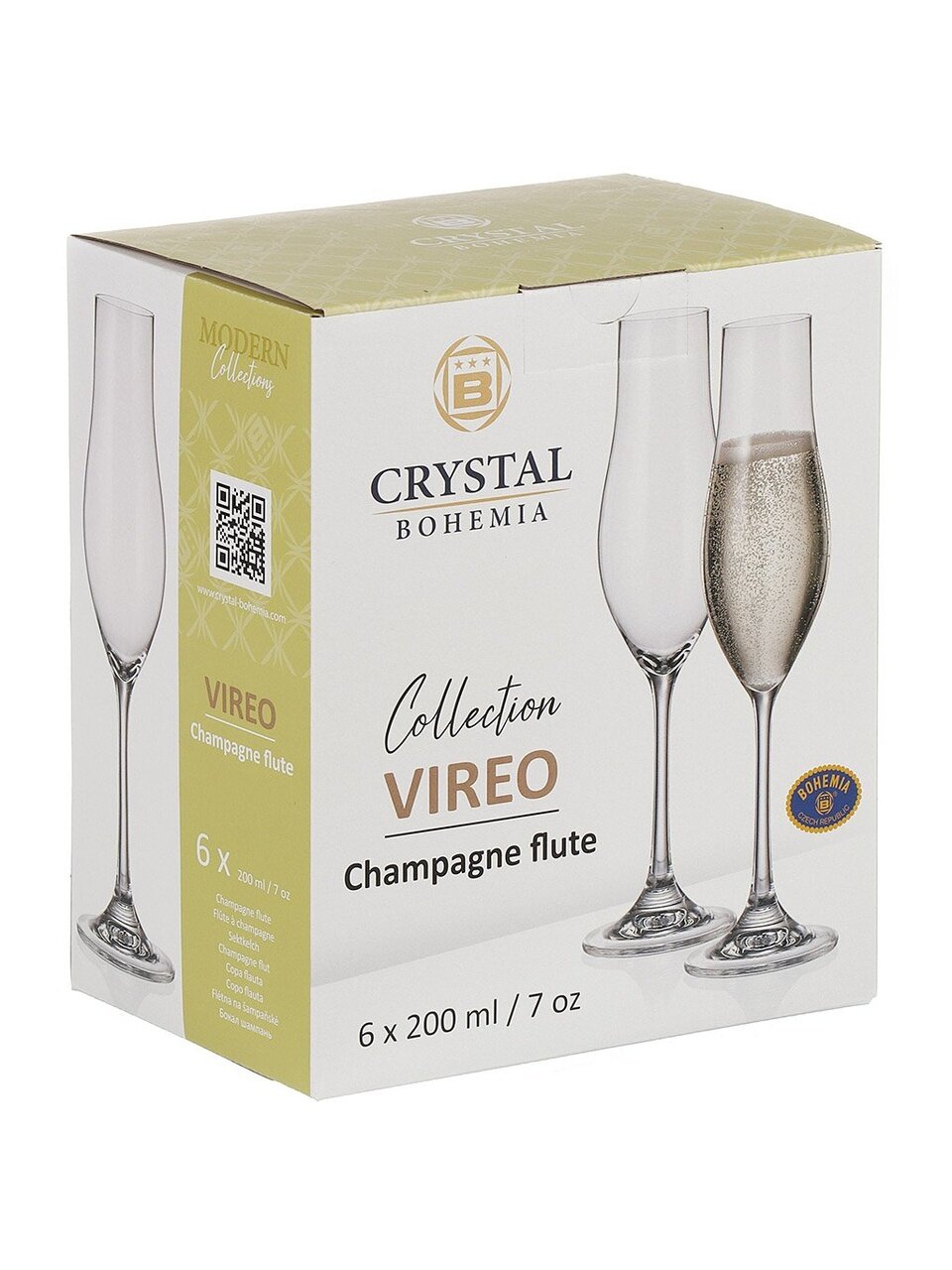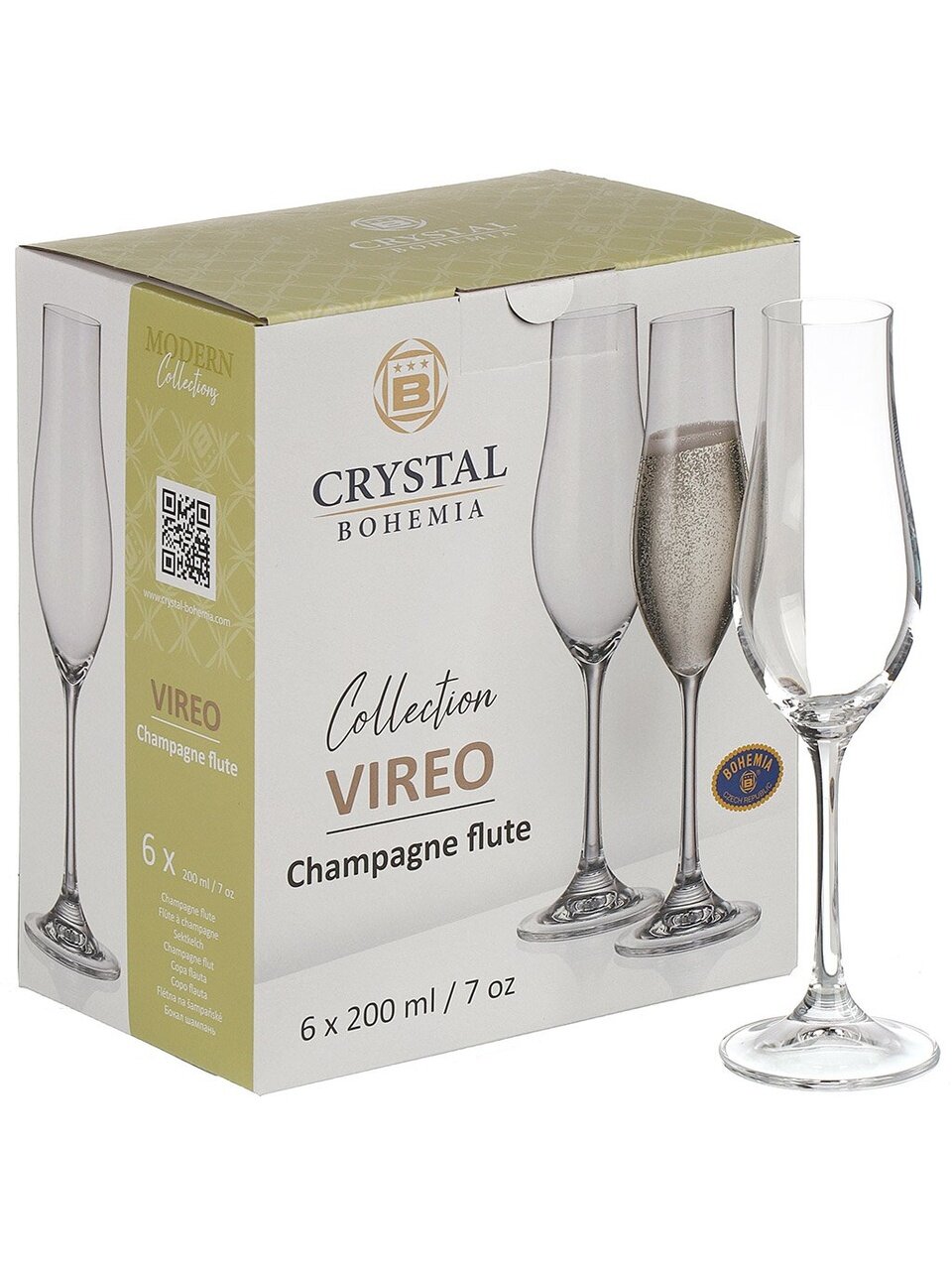 Стильные бокалы для шампанского Bohemia Vireo 200 мл (6 шт.) — идеальный подарок и решение для праздничной сервировки: прочное стекло, изысканный дизайн, выгодная цена.