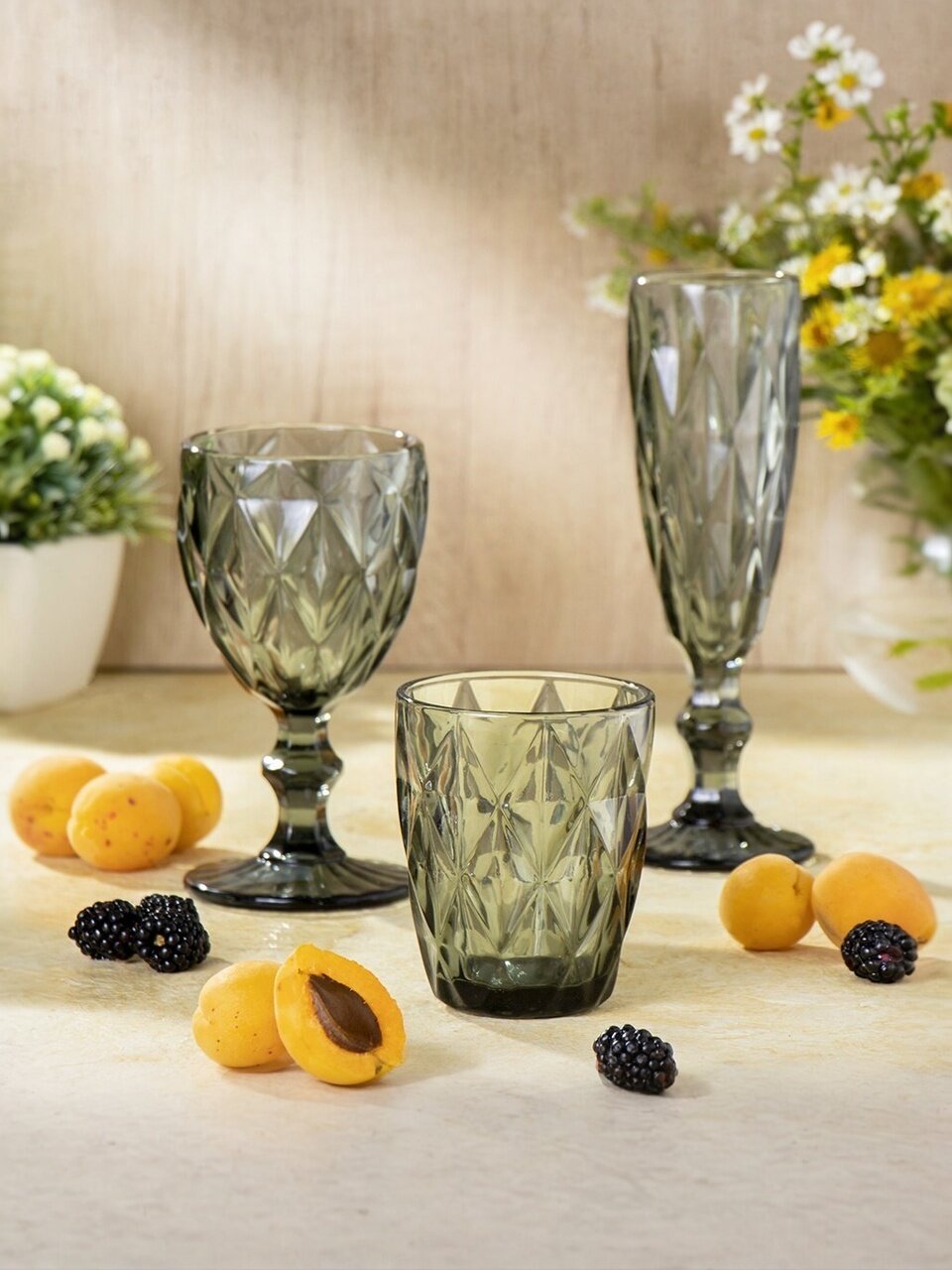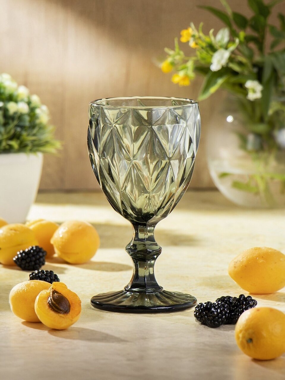 Бокал для вина 250 мл из прессованного стекла с рельефной текстурой и стильным дизайном «Графит/Малахит» — изысканный акцент для вашего стола или подарка, который подчеркнёт вкус и статус.