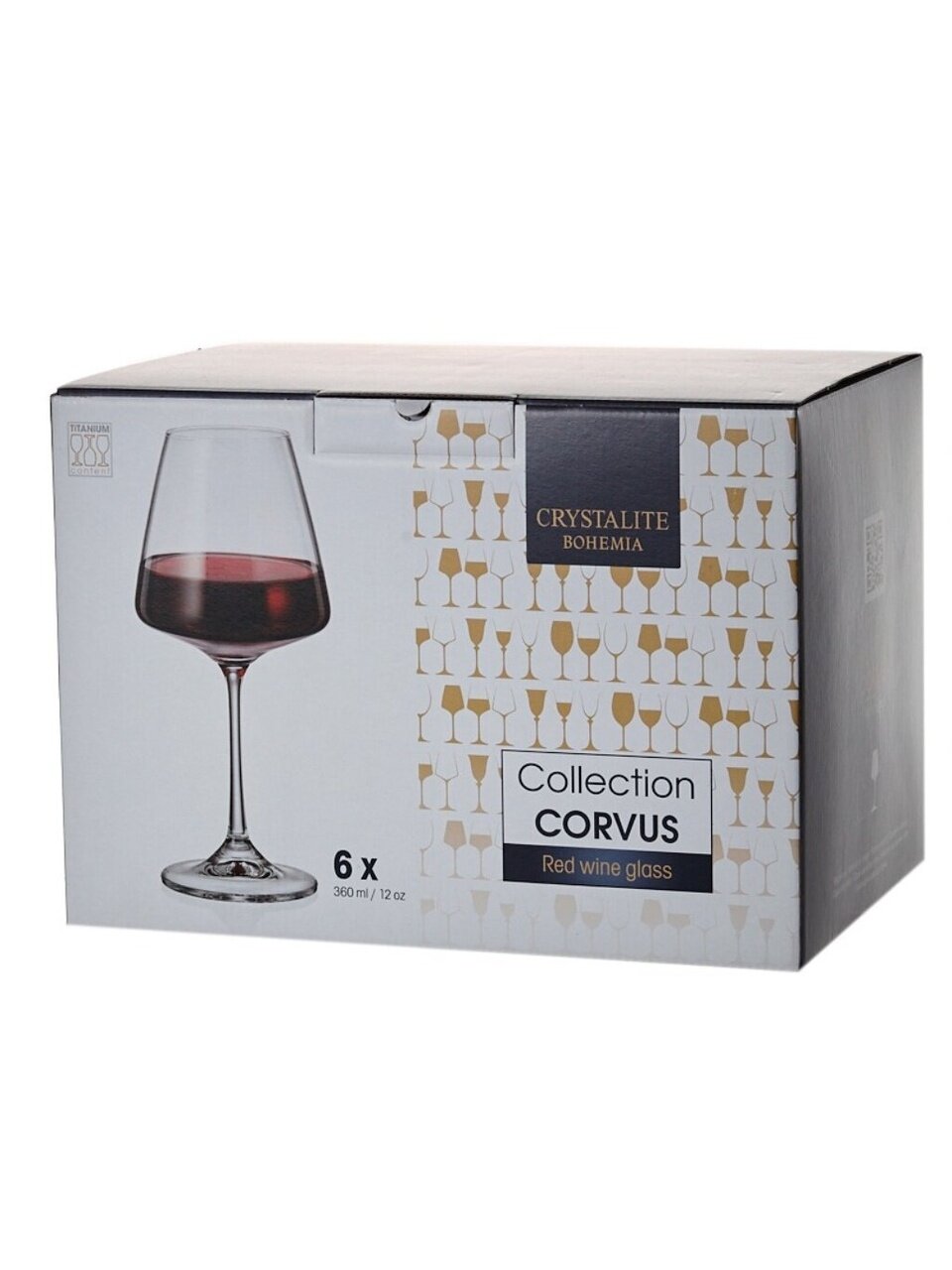 Бокалы для вина Bohemia Corvus Naomi 360 мл (6 шт): премиальное стекло из Чехии для стильной сервировки, идеальный подарок и выгодное решение для дома.