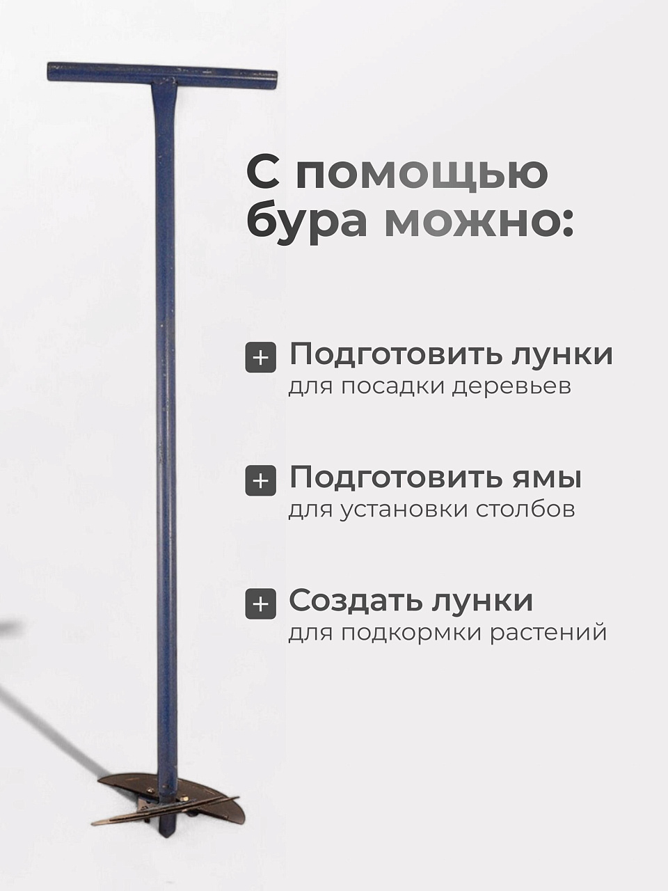 Предназначен для подготовки отверстий и лунок необходимой глубины и диаметра, с целью установки столбов и различного рода свай, для установки дорожных знаков и посадки деревьев. Буры выполнены из высококачественной инструментальной стали. Имеют режущую кромку из твердосплавного материала и особую форму зубца.