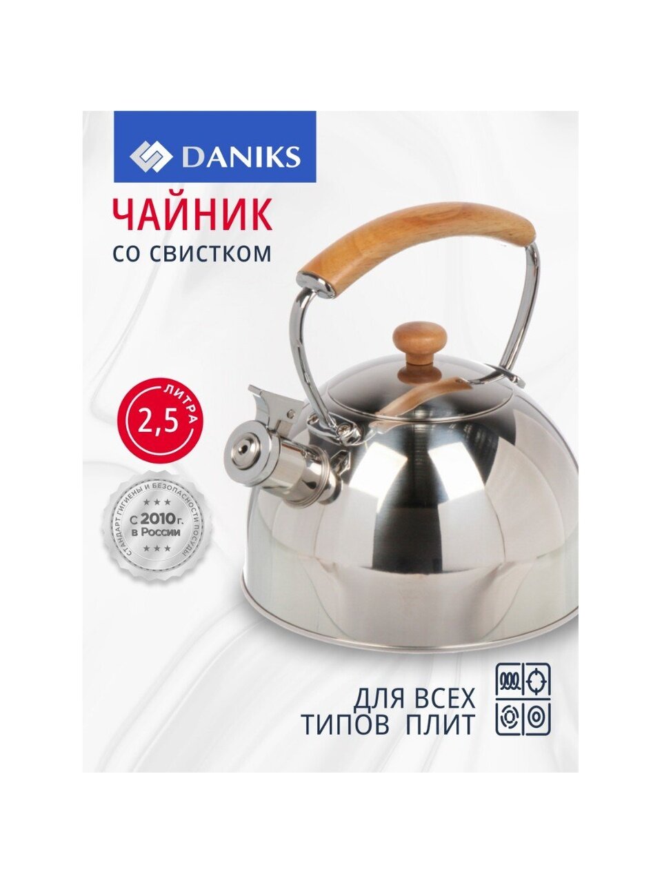 Вы можете приобрести «Чайник нержавеющая сталь, 2.5 л, со свистком, зеркальный, ручка с покрытием, дуб, Daniks, индукция, GS-04567G-2» и другие товары в нашем интернет-магазине в Воронеже по низким ценам и с бесплатным самовывозом.