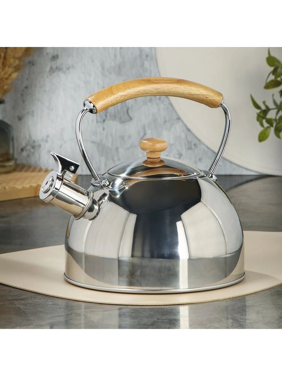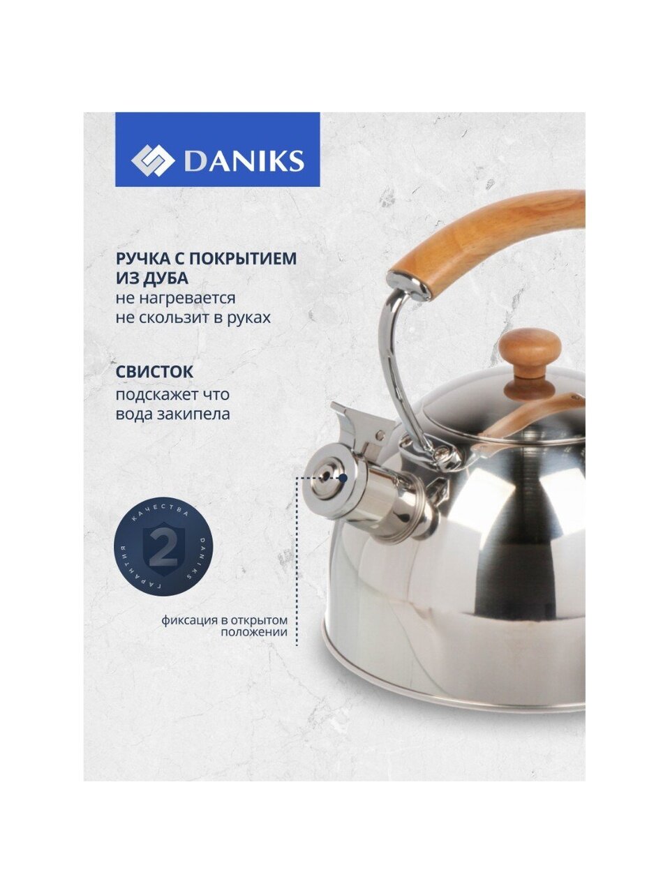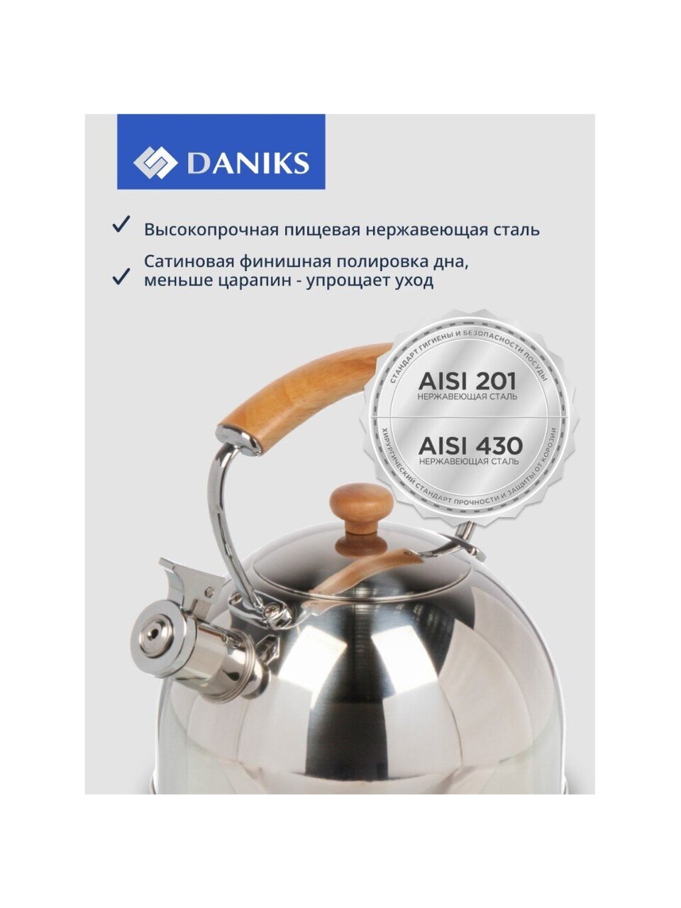 Этот чайник от Daniks — это не просто кухонный прибор, а выгодное вложение в комфорт и стиль вашего дома. Нержавеющая сталь гарантирует долгий срок службы, сохраняя при этом первоначальный вид, а дубовая ручка придает изделию особый шарм. Благодаря свистку, вы всегда будете уверены, что вода не выкипит, даже если отвлечетесь на другие дела.