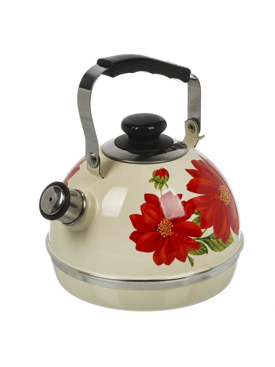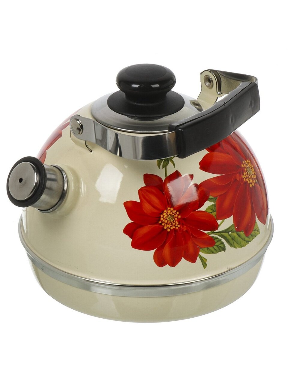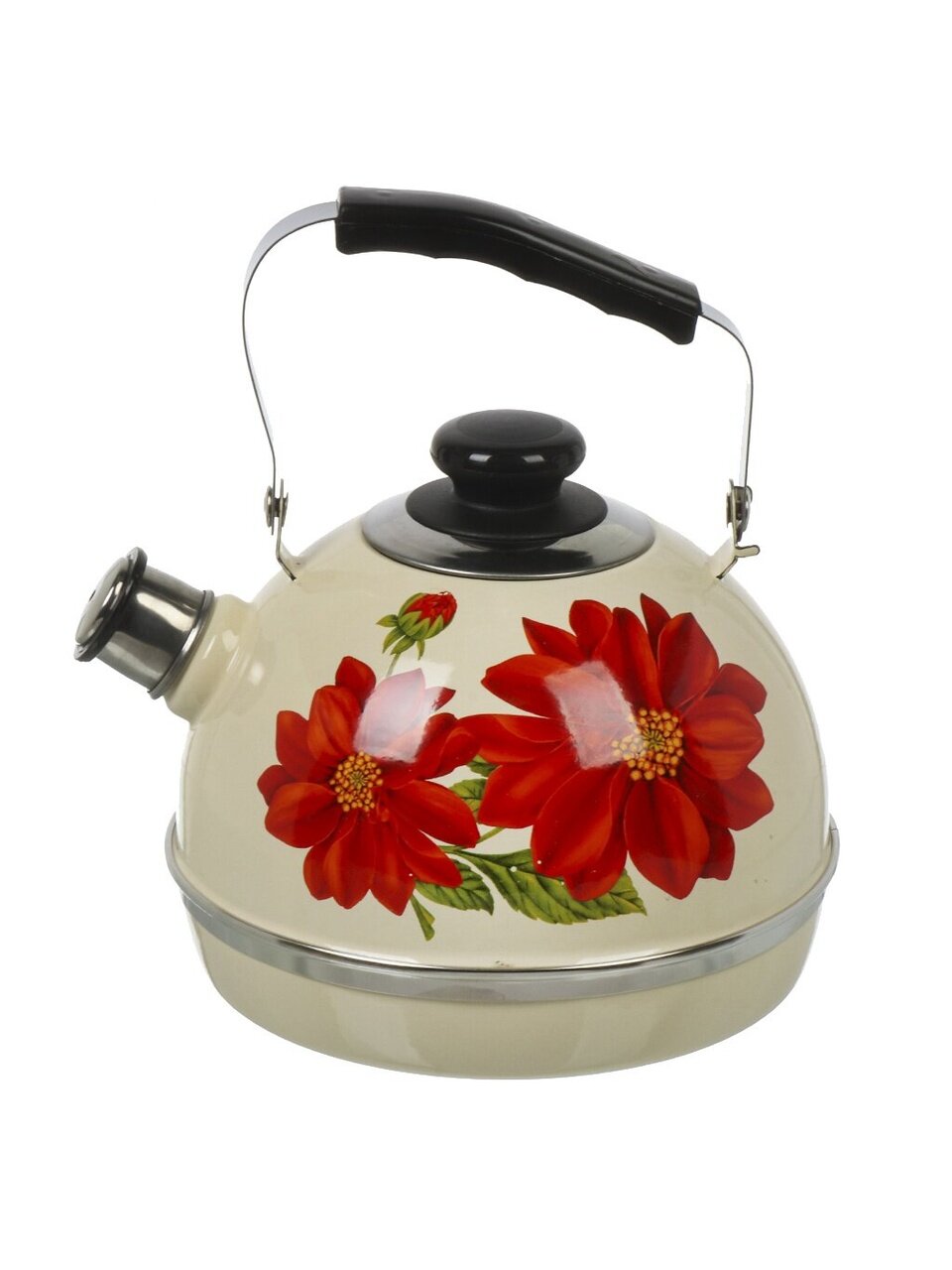 Чайник стальной эмалированный 3,5 л Рубин Лера: вместимость для большой семьи, свисток для безопасности, цена без переплат