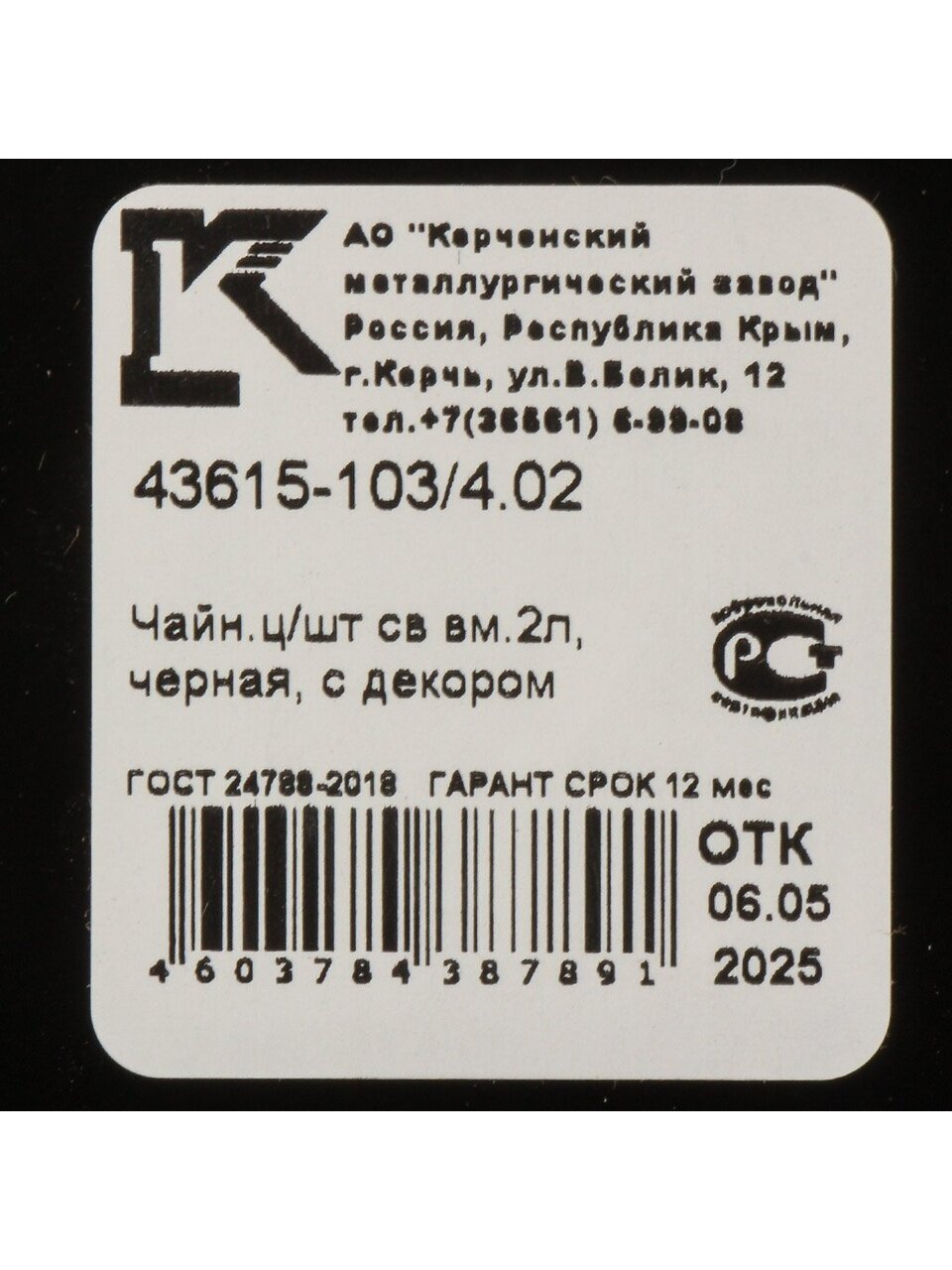 Вы можете приобрести «Чайник сталь, эмалированное покрытие, 2 л, со свистком, ручка консольная, Керченский металлургический завод, Мохито, черный, 43615-103/4.02-У4» и другие товары в нашем интернет-магазине в Серпухове по низким ценам и с бесплатным самовывозом.