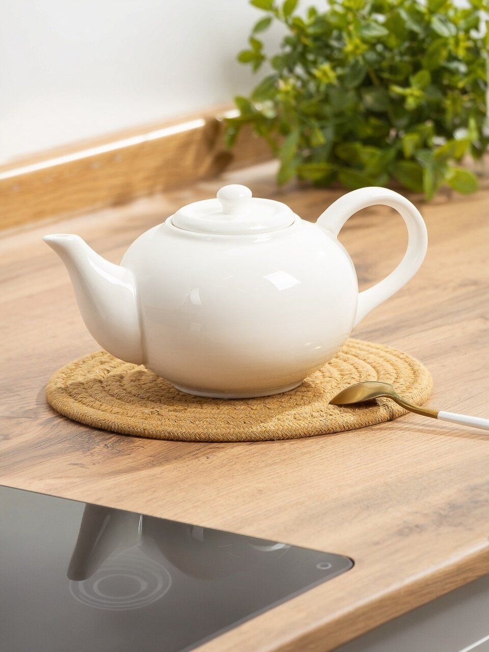 Этот чайник не оснащен ситечком, что дает возможность использовать его с любыми видами чайных пакетиков или заварочных устройств, предоставляя свободу выбора. Керамическая крышка и ручка добавляют изделию изящества и подчеркивают его современный стиль. Круглая форма чайника способствует равномерному распределению тепла, что благоприятно сказывается на заваривании чая.