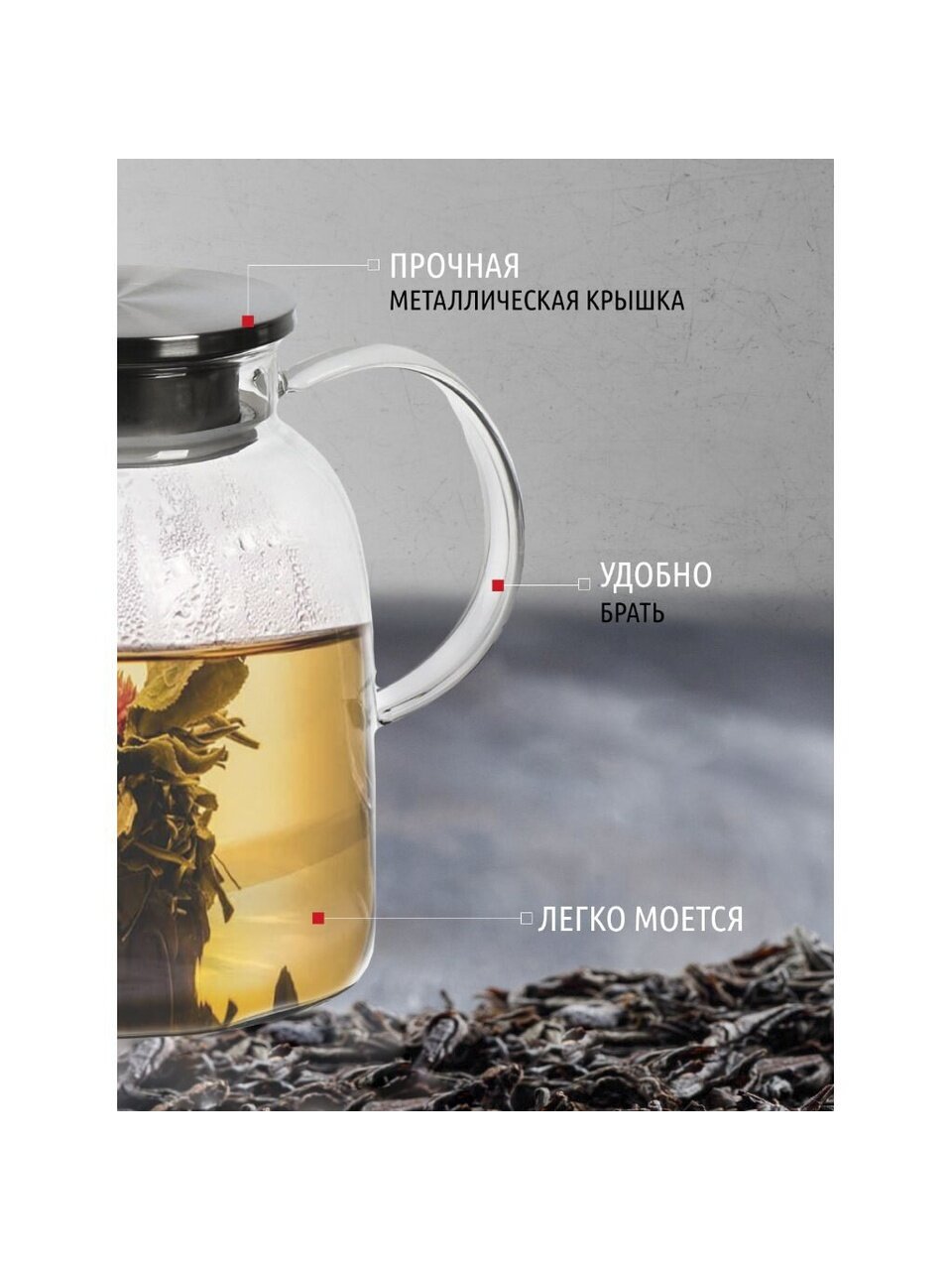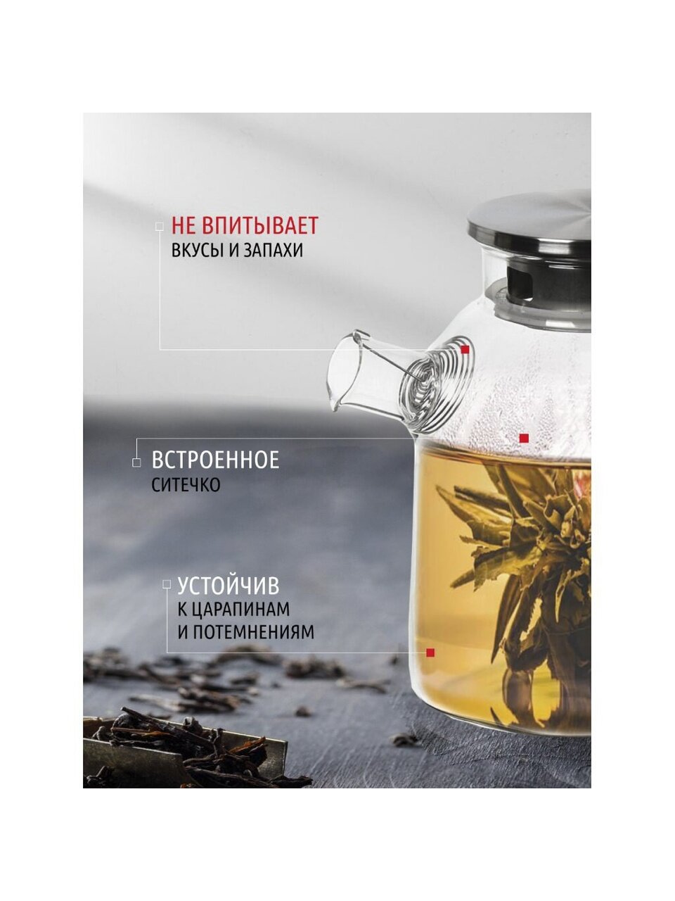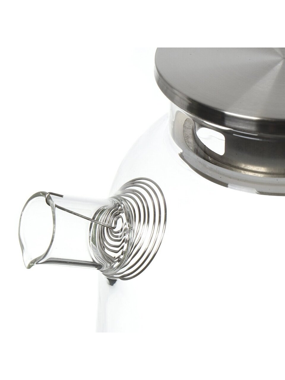Прозрачный чайник с крышкой из нержавеющей стали - отличный выбор для настоящих ценителей чая. Удобное расположение носика со встроенным металлическим фильтром в виде спирали обеспечит комфортное наливание. Долговечная крышка из нержавеющей стали с плотным резиновым уплотнителем надолго сохранит напиток теплым.