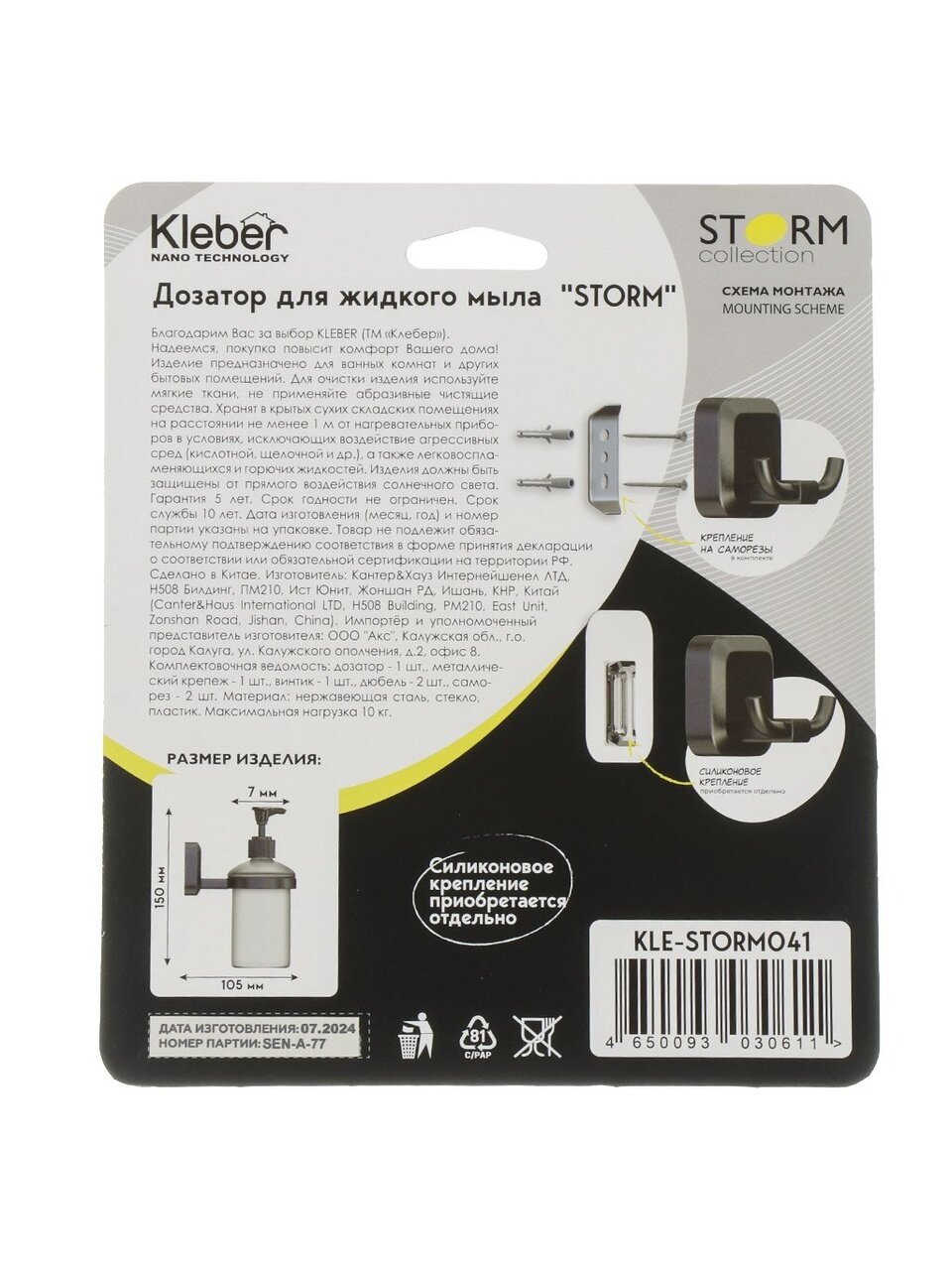 Покупка дозатора для жидкого мыла KLE-STORM041 — это инвестиция в комфорт и стиль вашего дома. Этот аксессуар не только придаст вашему пространству изысканность, но и сделает ежедневные ритуалы более приятными и удобными. Наслаждайтесь чистотой и порядком, которые подарит вам этот дозатор, и ощутите, как каждый день становится немного лучше.
