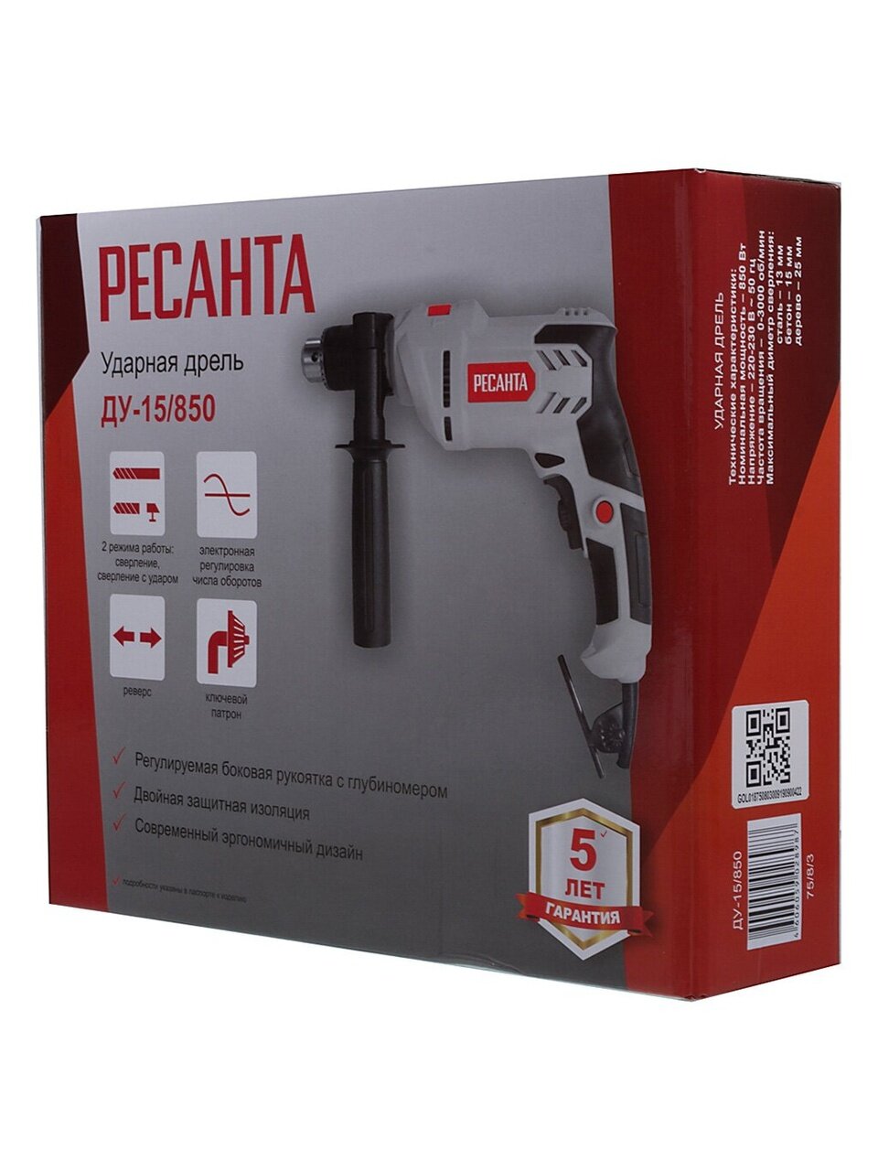 Дрель ударная Ресанта ДУ-15/850 - электрический инструмент, предназначенный для сверления отверстий в различных материалах, а также заворачивания/отворачивания винтов и шурупов, при проведении строительных, отделочных, столярных, слесарных и других работ.