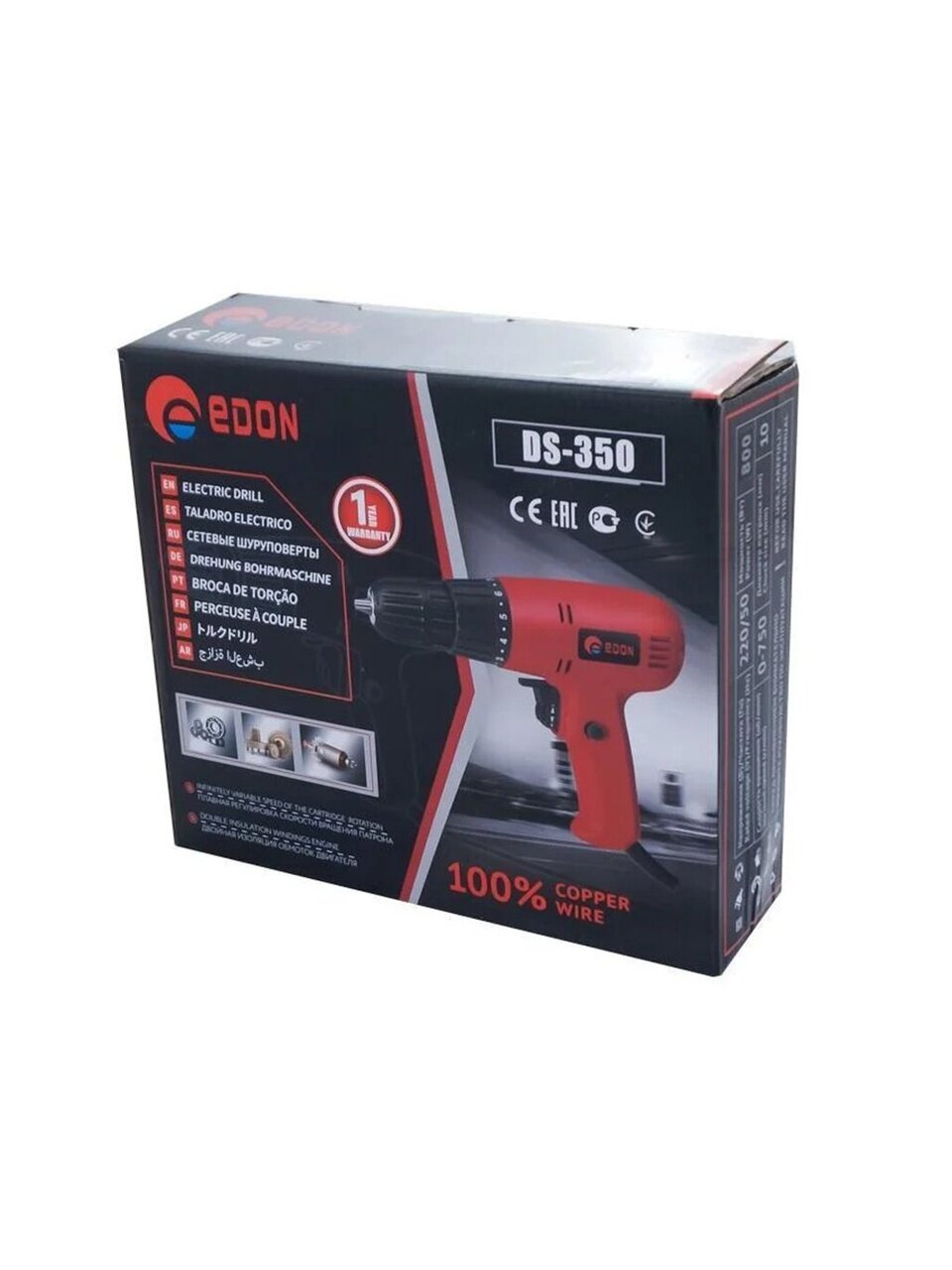 Дрель-шуруповёрт электрическая Edon DS-350 - электрический инструмент, предназначенный для придачи вращательного движения сверлу или другому режущему инструменту для сверления отверстий в различных материалах при проведении строительных, отделочных, столярных, слесарных и других работ.