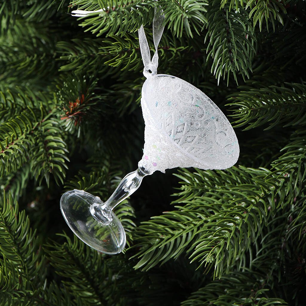 Елочное украшение в форме бокала — трендовый выбор для тех, кто ищет оригинальные и недорогие игрушки на ёлку для дачи или квартиры. Благодаря материалу пластик, украшение не боится падений и подходит для семей с детьми и животными. Перламутровое покрытие и блестки создают эффект роскоши на любой ёлке, а прозрачный цвет универсален для любого стиля декора.