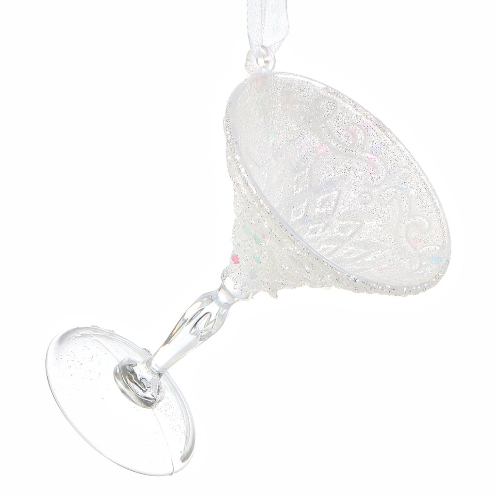 Высота бокала — 9 см, крепление на подвеске. Цвет — прозрачный с перламутром и блестками, материал — пластик, не входит в набор.