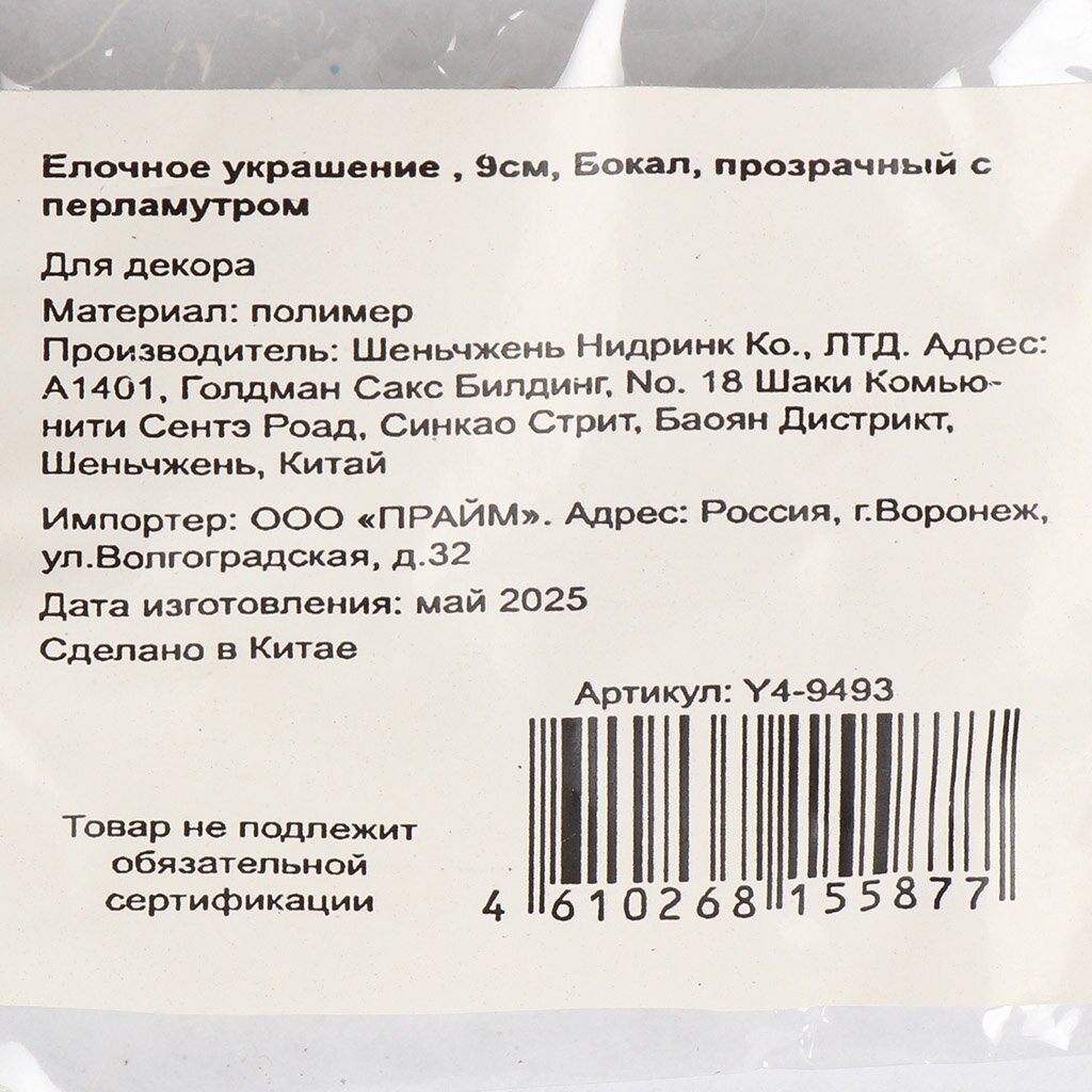 Вы можете приобрести «Елочное украшение Бокал, прозрачный с перламутром, 9 см, пластик, Y4-9493» и другие товары в нашем интернет-магазине в Таганроге по низким ценам и с бесплатным самовывозом.