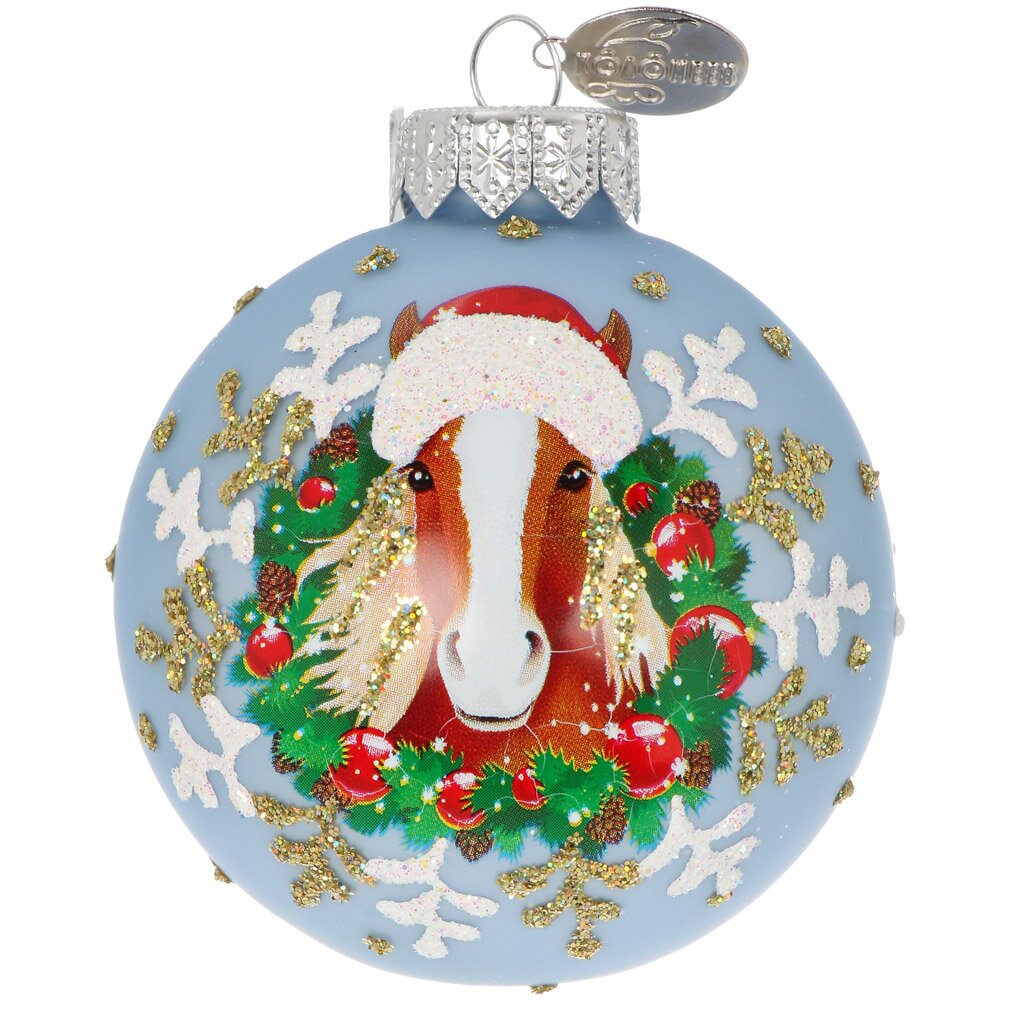 Елочный шар «Лошадка зимняя 1» 6.5 см: ручная роспись, стекло, символ года 2026 — стильный подарок и уют для вашей елки по доступной цене.