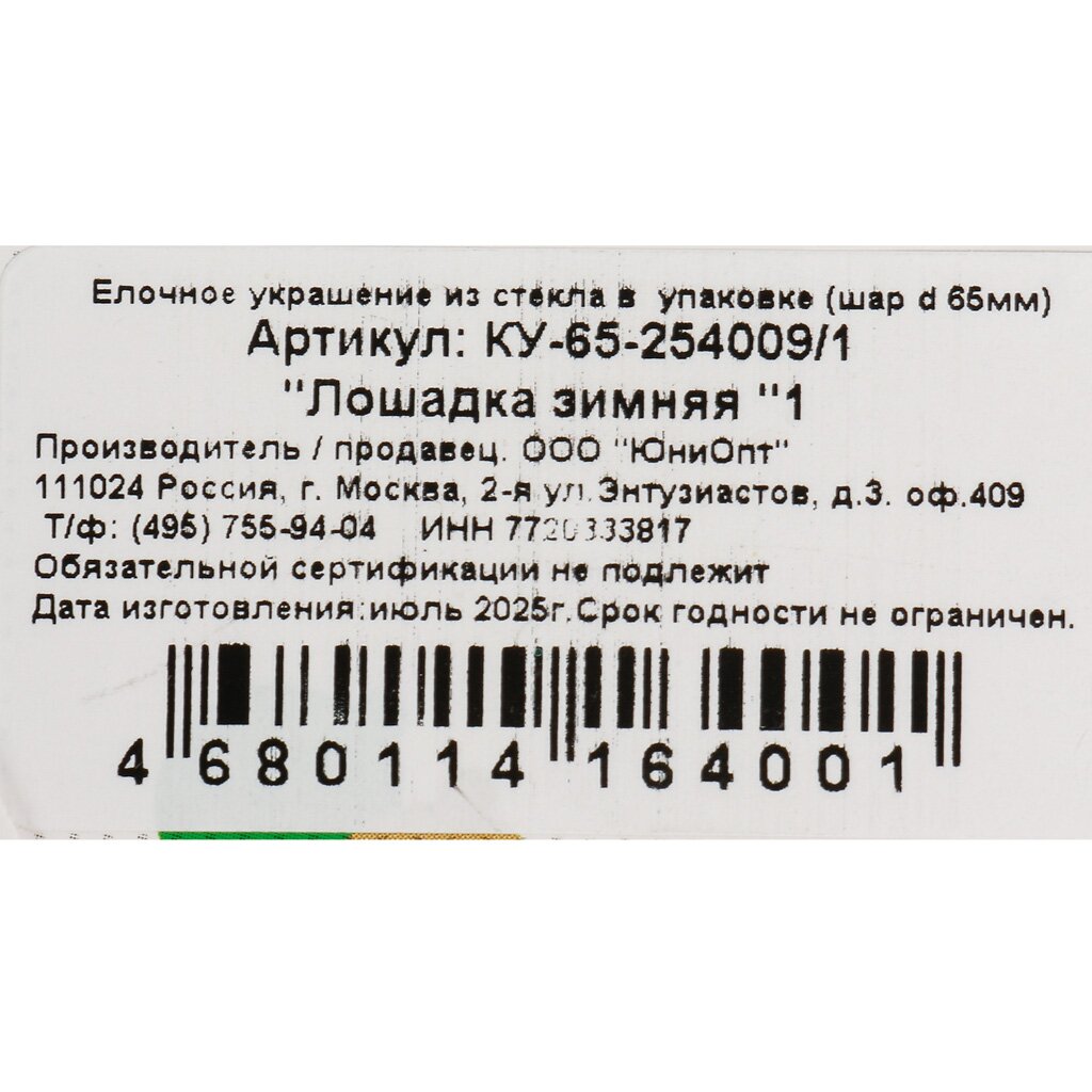 Вы можете приобрести «Елочный шар Лошадка зимняя 1, 6.5 см, стекло, КУ-65-254009/1» и другие товары в нашем интернет-магазине в Обнинске по низким ценам и с бесплатным самовывозом.