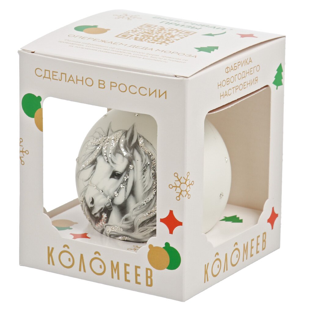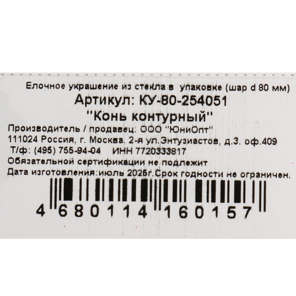Елочный шар Конь контурный, 8 см, стекло, КУ-80-254051