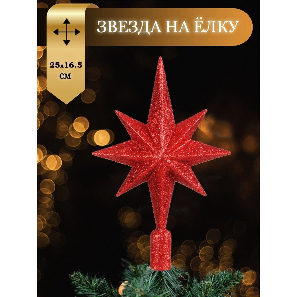 Верхушка на елку Звезда красная 25х16.5 см — яркий акцент для новогоднего декора, который не разобьётся и украсит даже уличную ель. Быстрая доставка и гарантия качества.