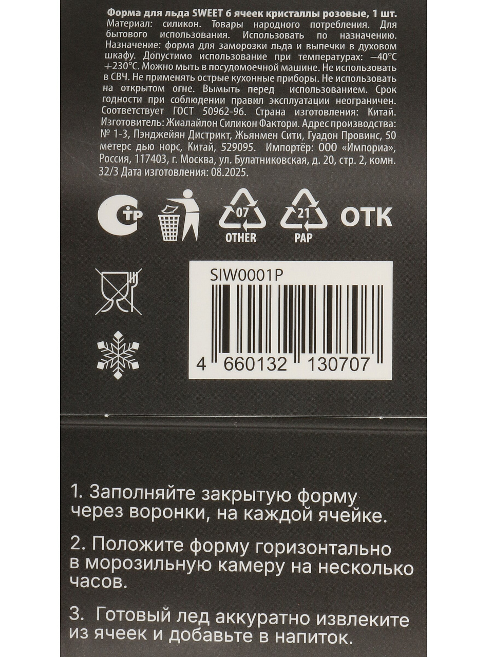 - Уникальный дизайн: форма создает кристаллы льда необычной формы, которые украсят любой напиток.