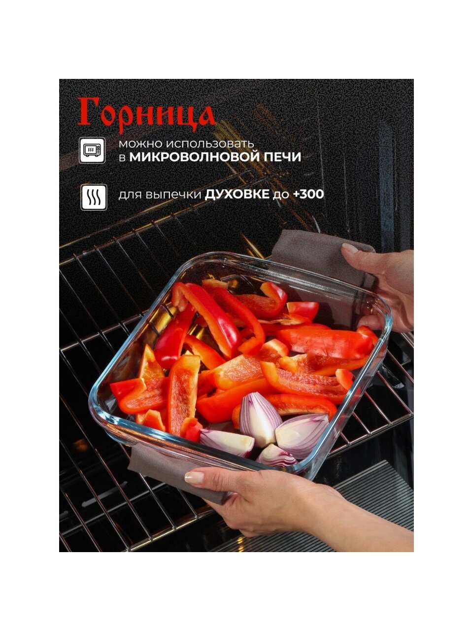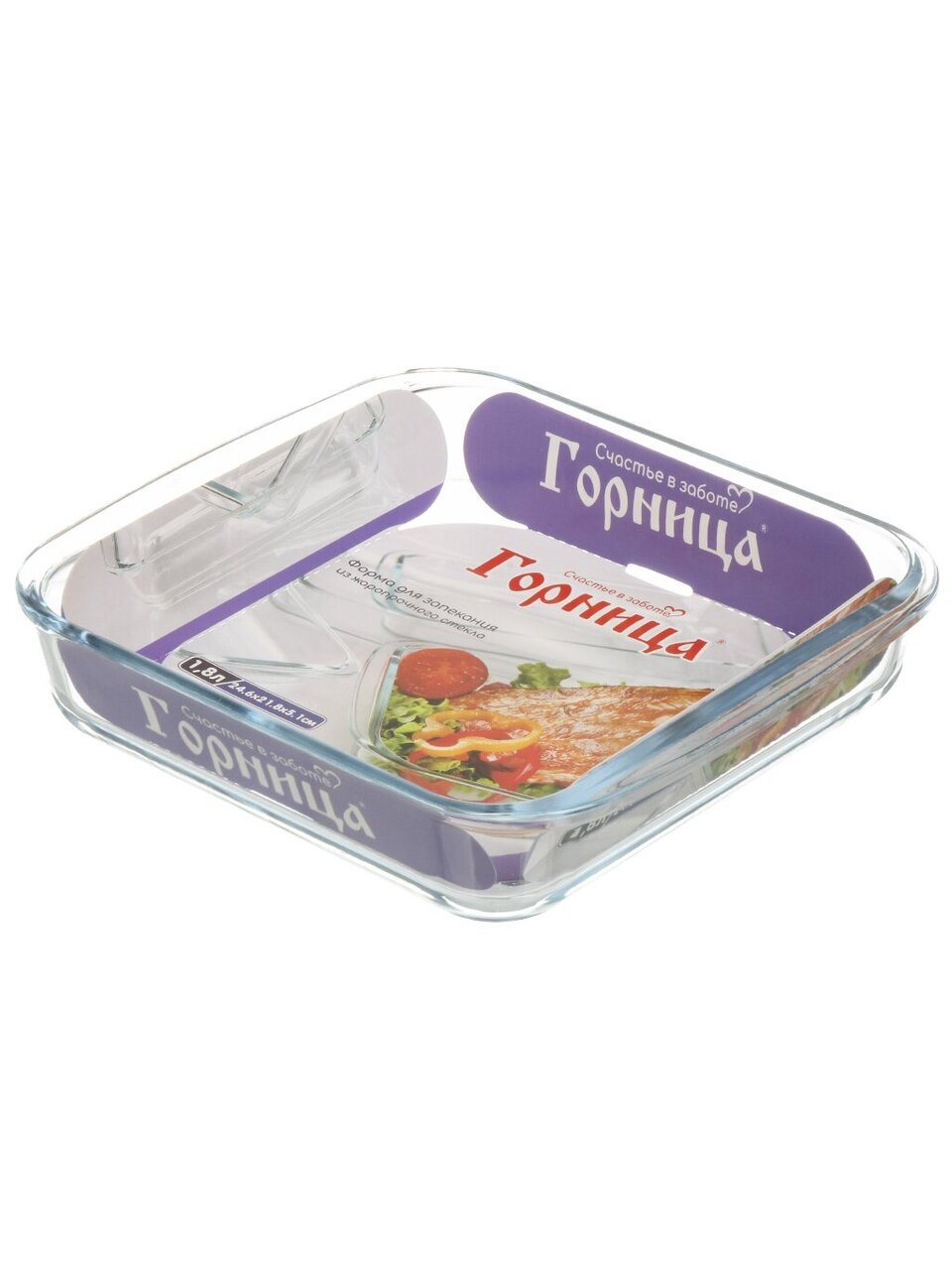 Форма для запекания из стекла 1.8 л Горница — удобно готовить мясо, рыбу, овощи и пироги дома и на даче. Прозрачность, ручки, универсальный размер.