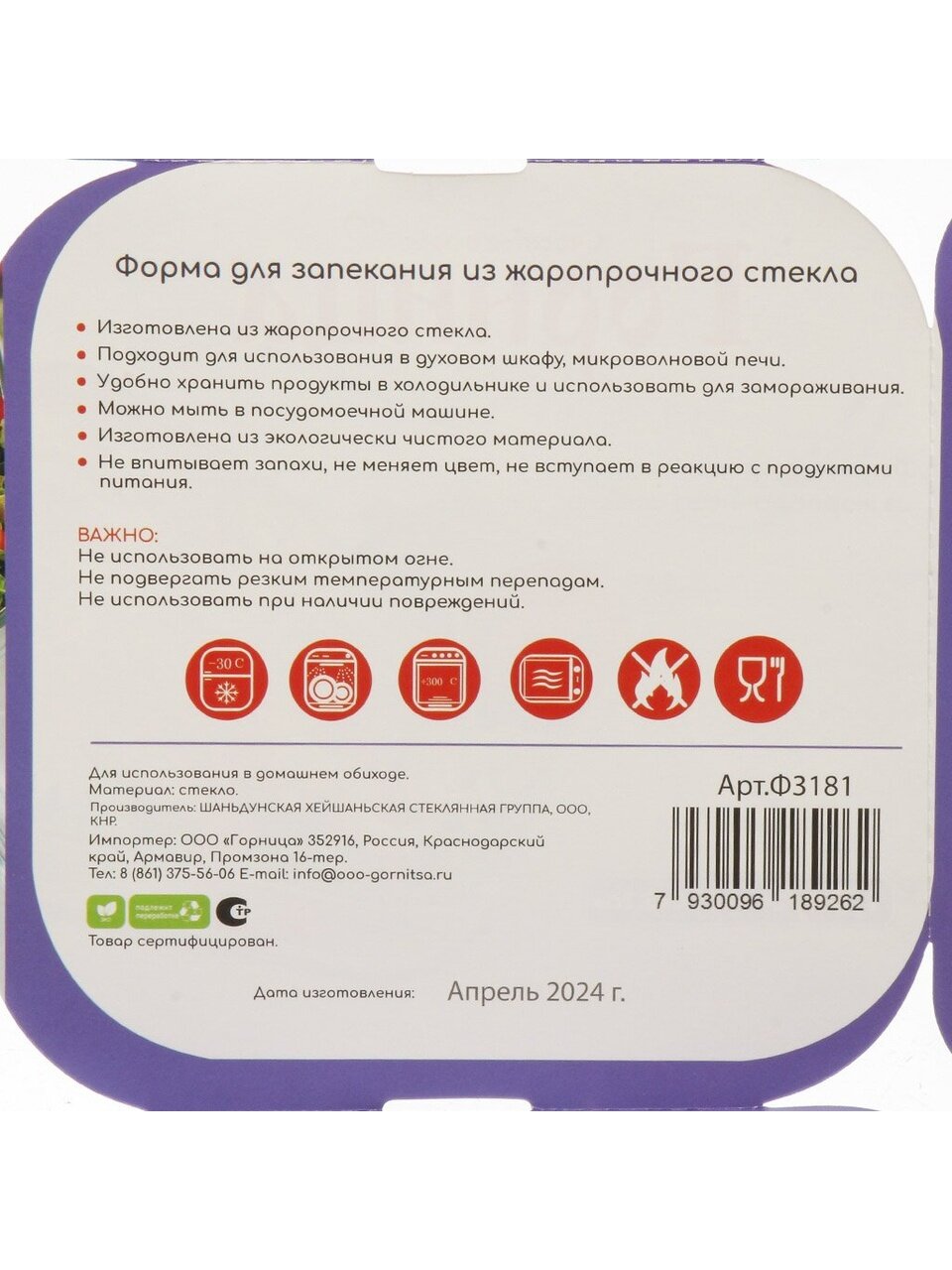 Вы можете приобрести «Форма для запекания стекло, 21.8х24.6х5.1 см, 1.8 л, квадратная, с ручками, Горница, Ф3181» и другие товары в нашем интернет-магазине в Серпухове по низким ценам и с бесплатным самовывозом.
