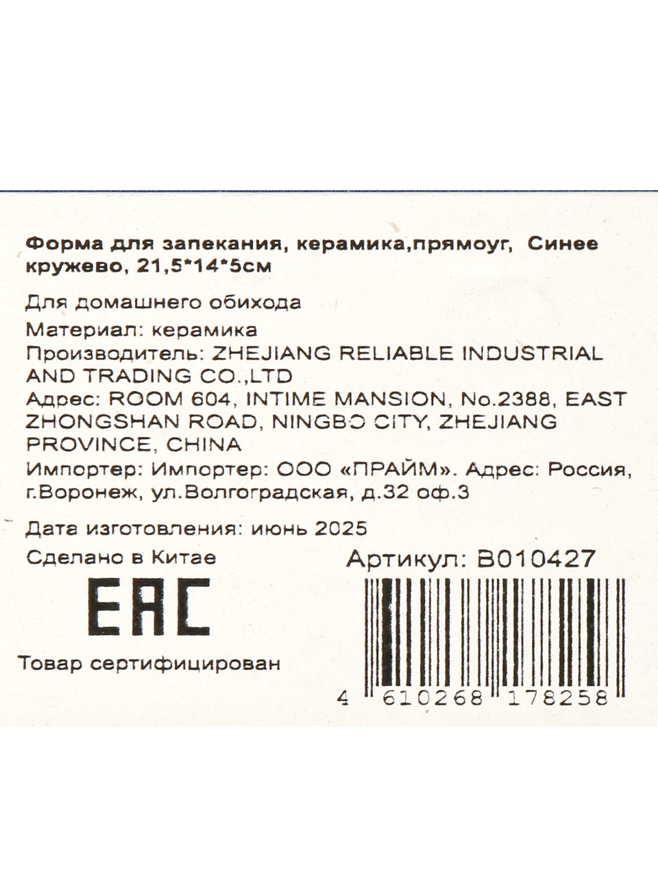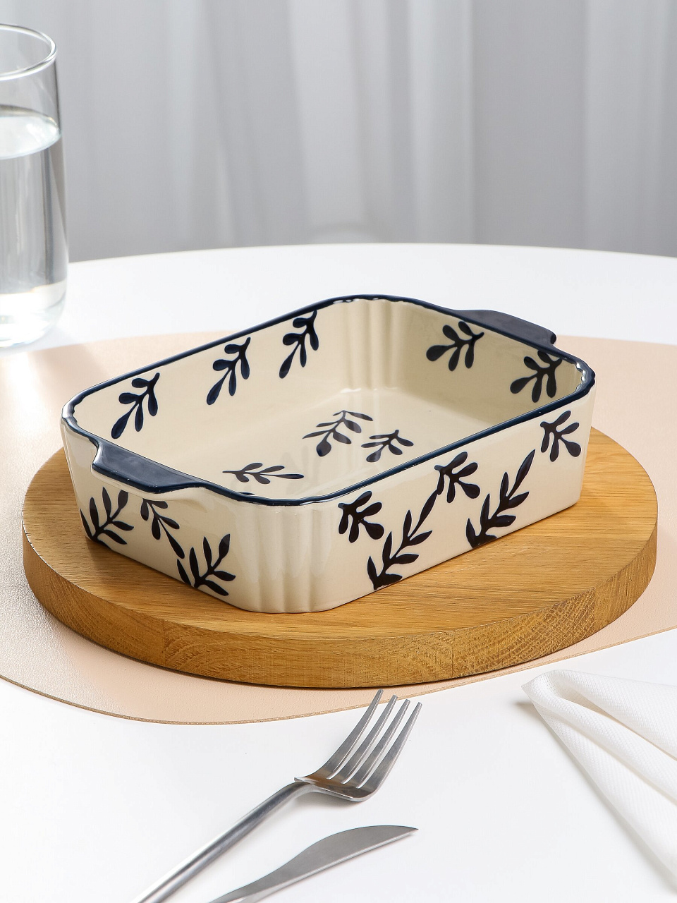 Многие спрашивают: подходит ли эта форма для духовки и микроволновки, можно ли мыть в посудомоечной машине? Да, форма «Синее кружево» универсальна: она выдерживает высокие температуры, не боится перепадов и легко очищается. Ее прямоугольная форма удобна для порционной подачи, а стильный молочный цвет с синим декором украсит любую сервировку. Если вы выбираете, что лучше для запекания на даче или в подарок, обратите внимание на это решение — оно сочетает эстетику и практичность.