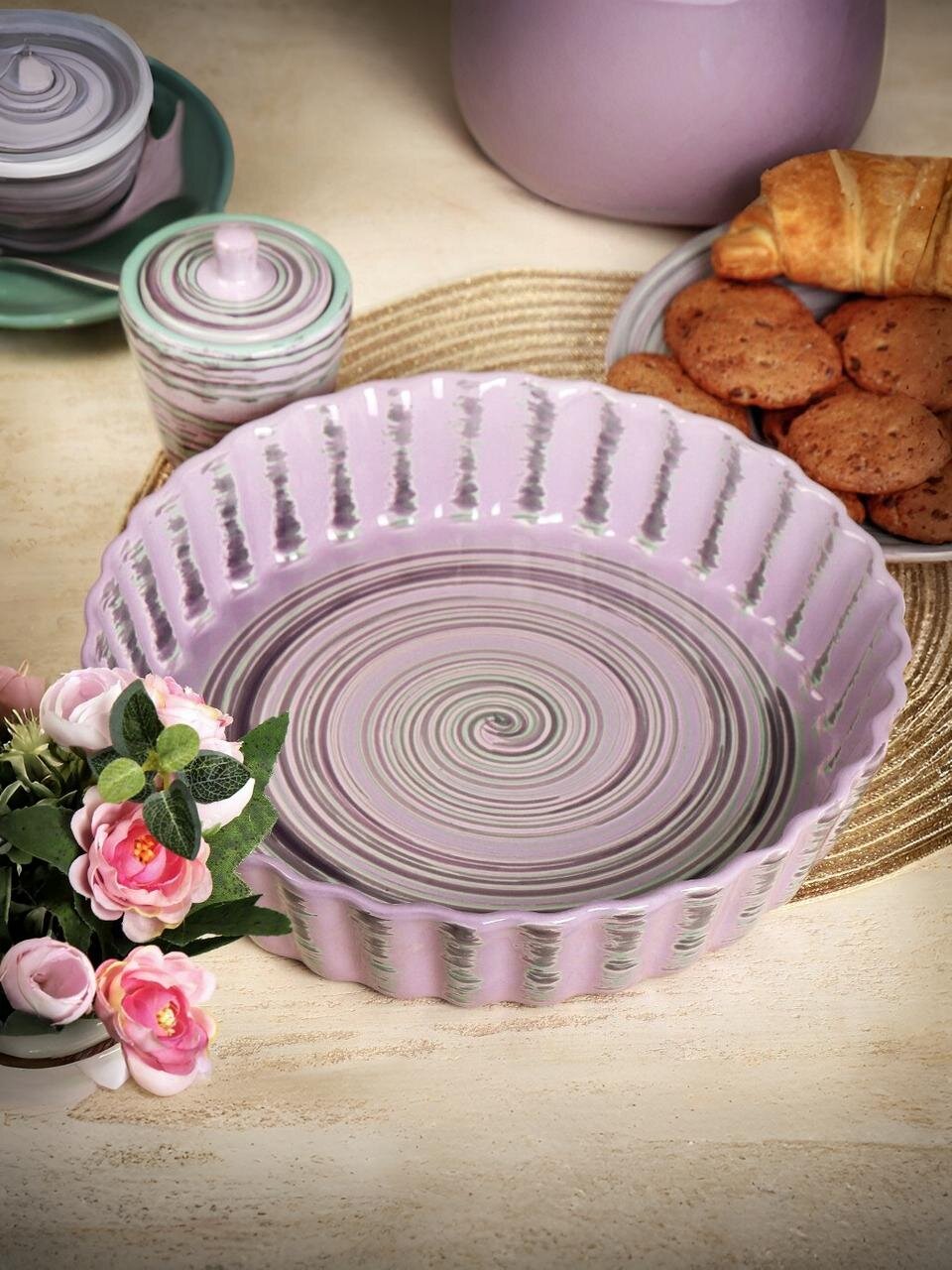 Керамическая форма для запекания 28 см, 2.5 л — элегантное решение для пирогов и запеканок, устойчивое к перепадам температуры, стиль «Лаванда» для вашего дома.