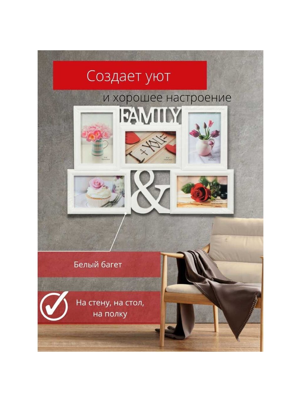 Вы можете приобрести «Фоторамка-коллаж на 5 фото, 29.5х46 см, белая, Family, Y3-1576» и другие товары в нашем интернет-магазине в Тамбове по низким ценам и с бесплатным самовывозом.