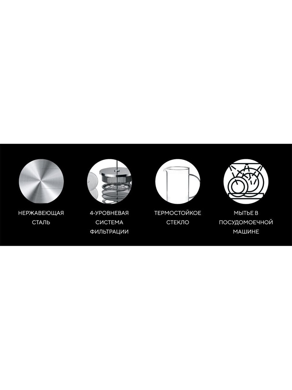 Напиток, приготовленный во френч-прессе, не требующем регулярной покупки фильтра или других элементов, лишен посторонних запахов и примесей, он максимально раскрывает свой вкус.