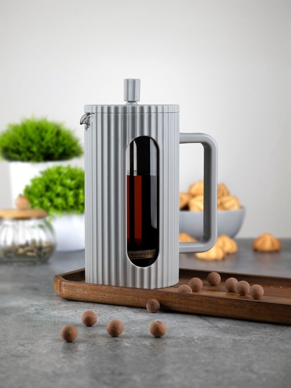 Материалы данного аксессуара не впитывают посторонние запахи, а также сохраняют первозданный вкус и аромат вашего напитка. Удобное использование и высокая стойкость к механическим воздействиям делают френч-пресс незаменимым кухонным помощником, с которым вы в любое время сможете насладиться любимым напитком.