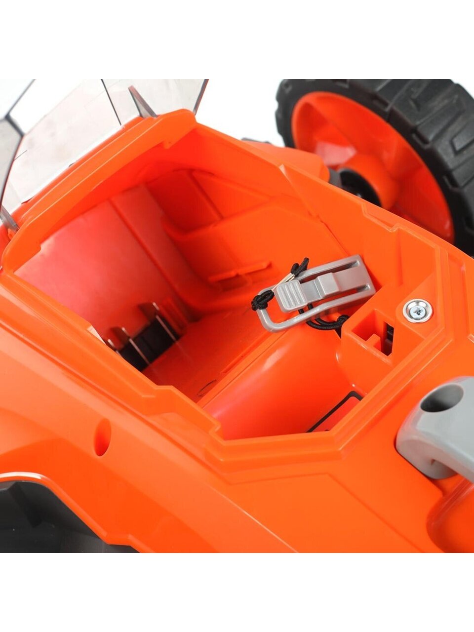 - Работа от аккумулятора: свободное перемещение по участку без проводов