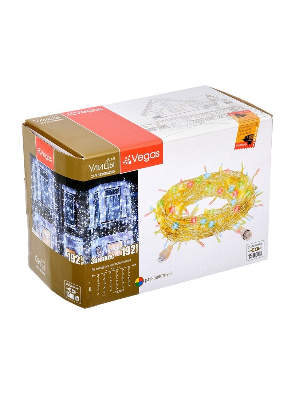 Вы можете приобрести «Гирлянда 192 лампы, 4х1 м, 1 режим, Занавес, Vegas, свет мультиколор, прозрачная, на улице/в помещении, сетевая, LED, 6 нитей, 55096» и другие товары в нашем интернет-магазине в Смоленске по низким ценам и с бесплатным самовывозом.