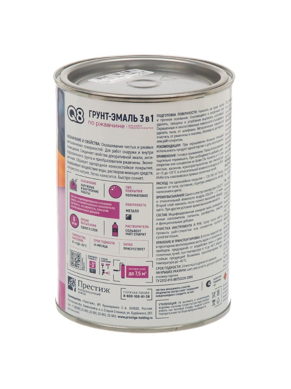 Грунт-эмаль Formula Q8 — идеальное решение для защиты металлических поверхностей от ржавчины. Серый алкидный состав обеспечивает надежное покрытие и долговечность. Товар подходит для использования в температурном диапазоне от 5 до 35°C, что делает его универсальным выбором для различных климатических условий. Продукт продается в удобной банке весом 0.8 кг.