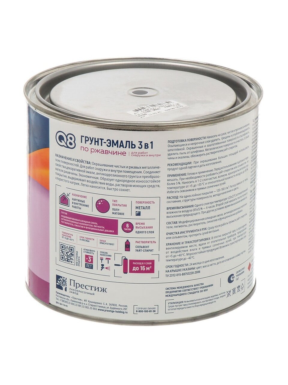Грунт-эмаль Formula Q8 — идеальный выбор для тех, кто ищет надежное и долговечное решение для защиты металлических поверхностей от коррозии. Это инновационное средство для окрашивания, объединяющее в себе три важные функции: антикоррозийную защиту, грунтовку и эмаль. Такой подход позволяет сэкономить время и средства, обеспечивая надежную защиту и эстетичный внешний вид.