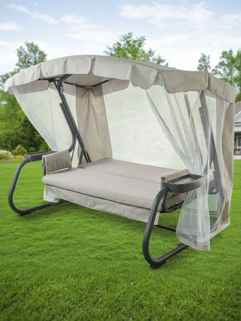Покупка этих качелей - это инвестиция в комфорт и стиль вашего сада. Они не только украсят пространство, но и создадут идеальные условия для отдыха и релаксации. Благодаря своей многофункциональности и продуманной конструкции, эти качели станут любимым местом для отдыха всей семьи. Независимо от погоды или времени суток, они обеспечат уют и защиту, позволяя наслаждаться каждым моментом на свежем воздухе.
