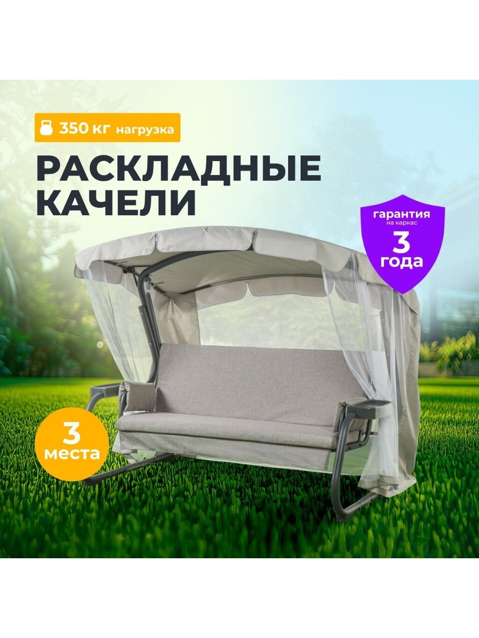 - комплектация: в комплекте тент, москитная сетка и подстаканники для максимального удобства;