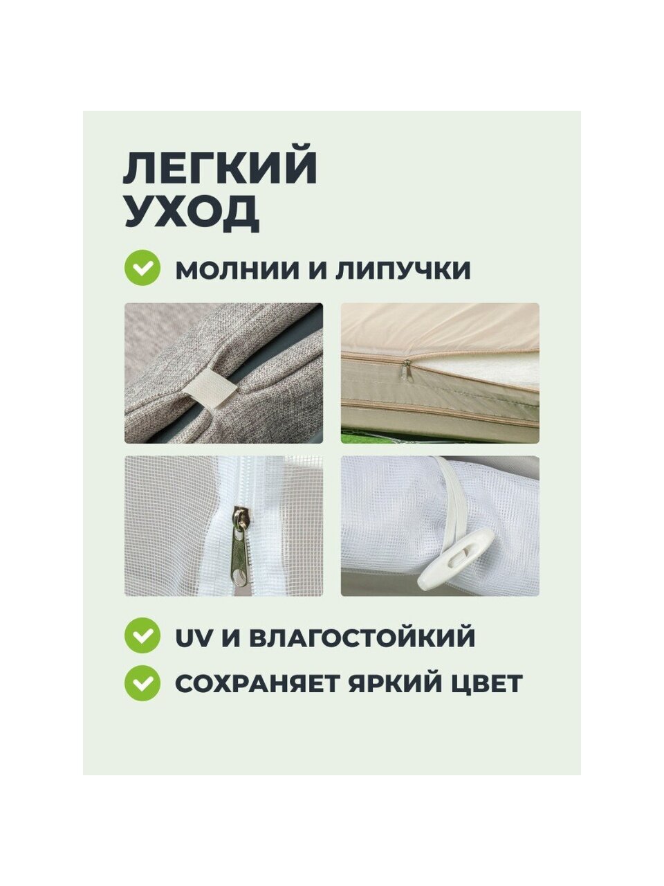 Чехлы мягких элементов и тент можно стирать при температуре не более 30 градусов.