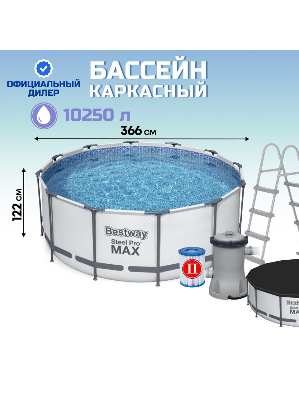 Вы можете приобрести «Бассейн каркасный Bestway, 366х122 см, Steel Pro Max, 56420BW, фильтр-насос, лестница, тент, 10250 л, ремкомплект» и другие товары в нашем интернет-магазине в Нижнем Новгороде по низким ценам и с бесплатным самовывозом.