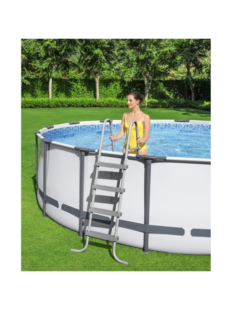 - Лестница и тент в комплекте: комфортное использование и защита от мусора.