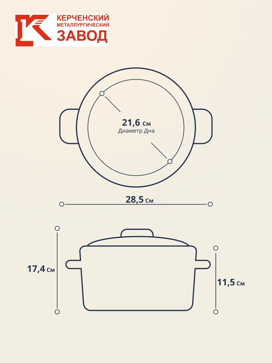 - Диаметр дна: 21.6 см.