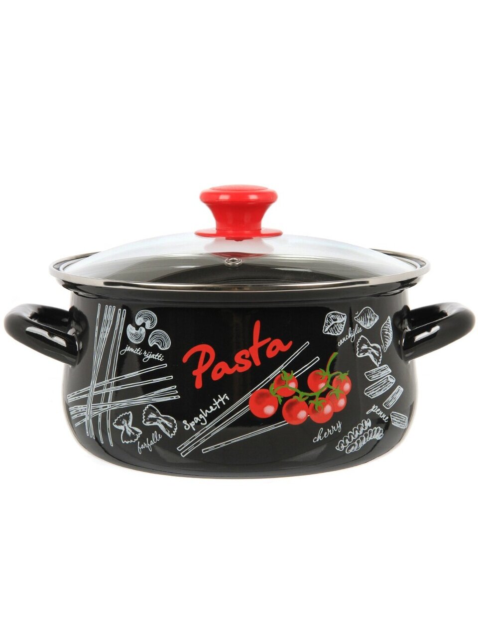 Кастрюля эмалированная 2 л с декором и стеклянной крышкой — оптимальный выбор для дома и дачи: долговечность, стиль и безопасность без лишних затрат.