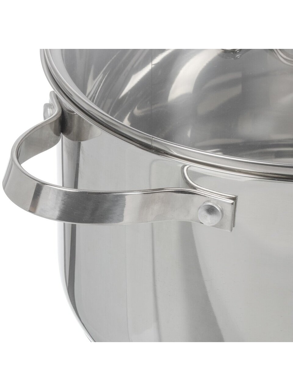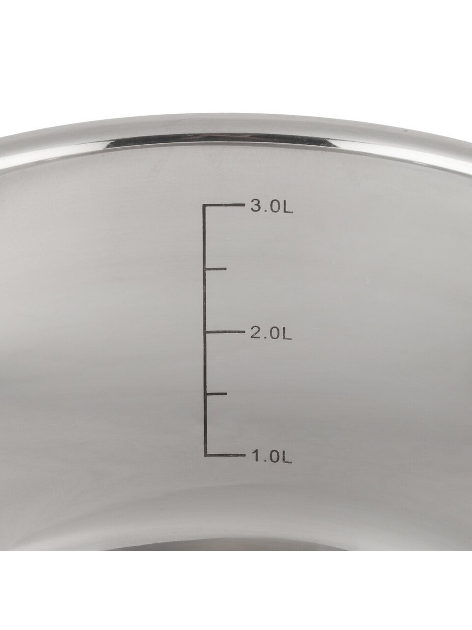 - Объем 3.6 л, прочная сталь марки 201, мерная шкала и выпускной клапан — удобно готовить супы, каши, макароны, пельмени
