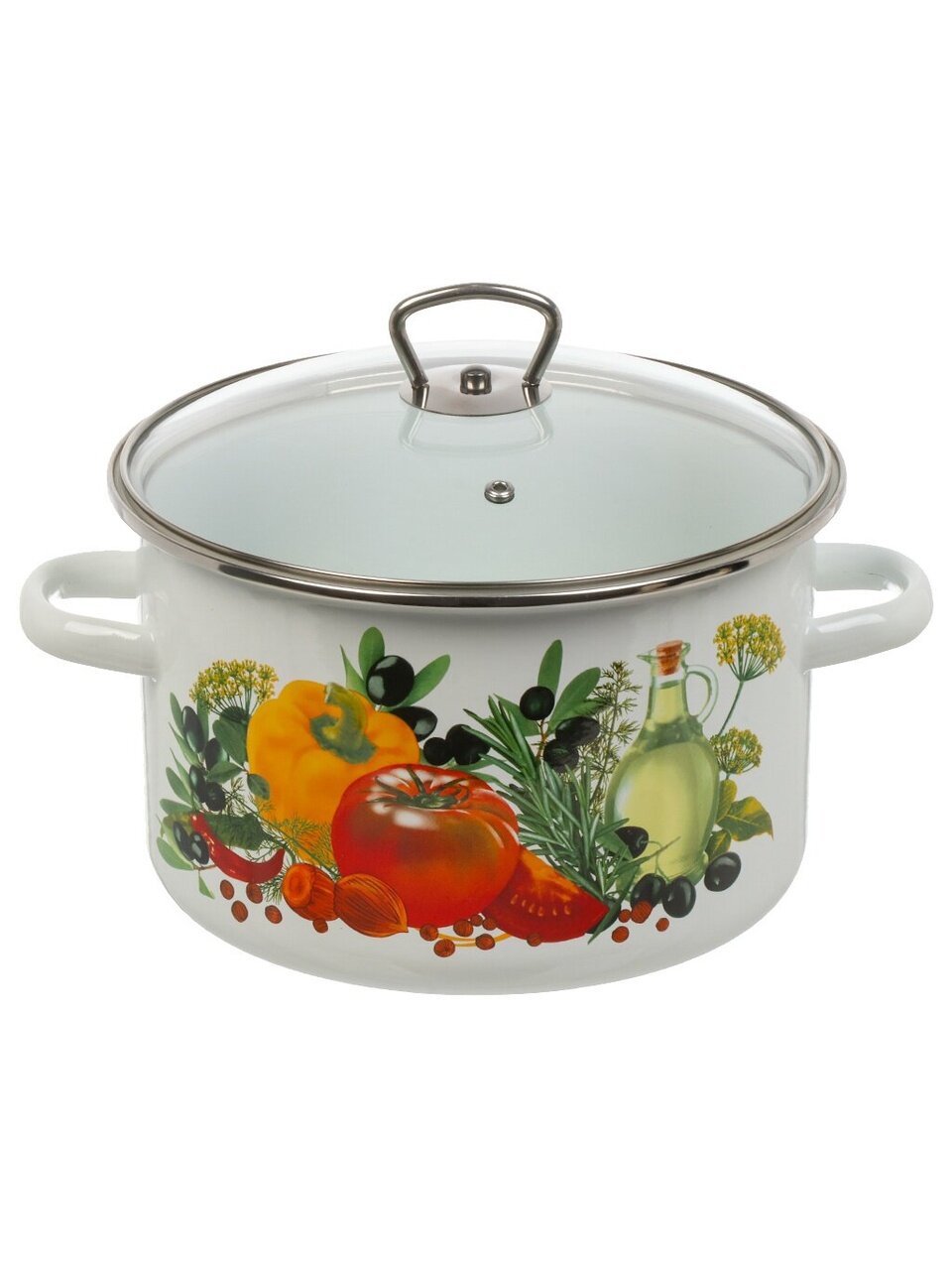 Кастрюля эмалированная 5.5 л СтальЭмаль: для индукции, стеклянная крышка, идеальна для супов и каш. Европейское качество по доступной цене.