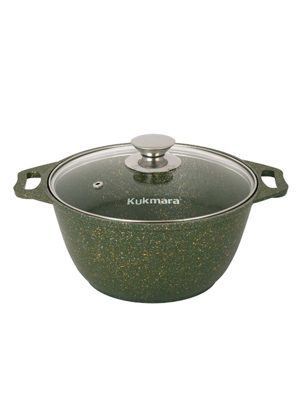 Кастрюля Kukmara Trendy style 2 л с гранитным антипригарным покрытием и стеклянной крышкой: идеальное решение для здорового питания и легкой готовки дома и на даче.